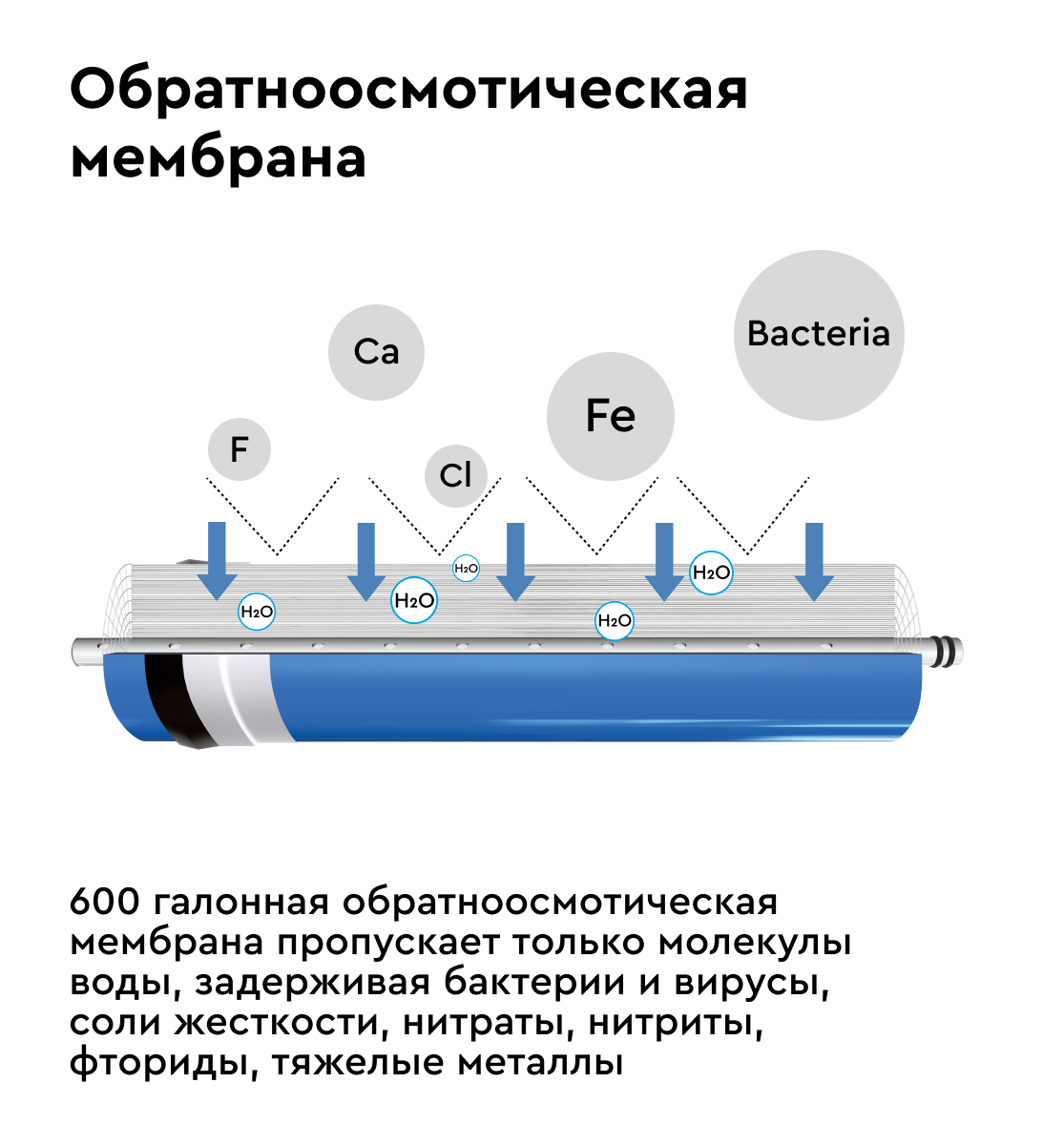 | Функции очистки | обратный осмос / очистка от бактерий / очистка от ржавчины / очистка от свободного хлора |