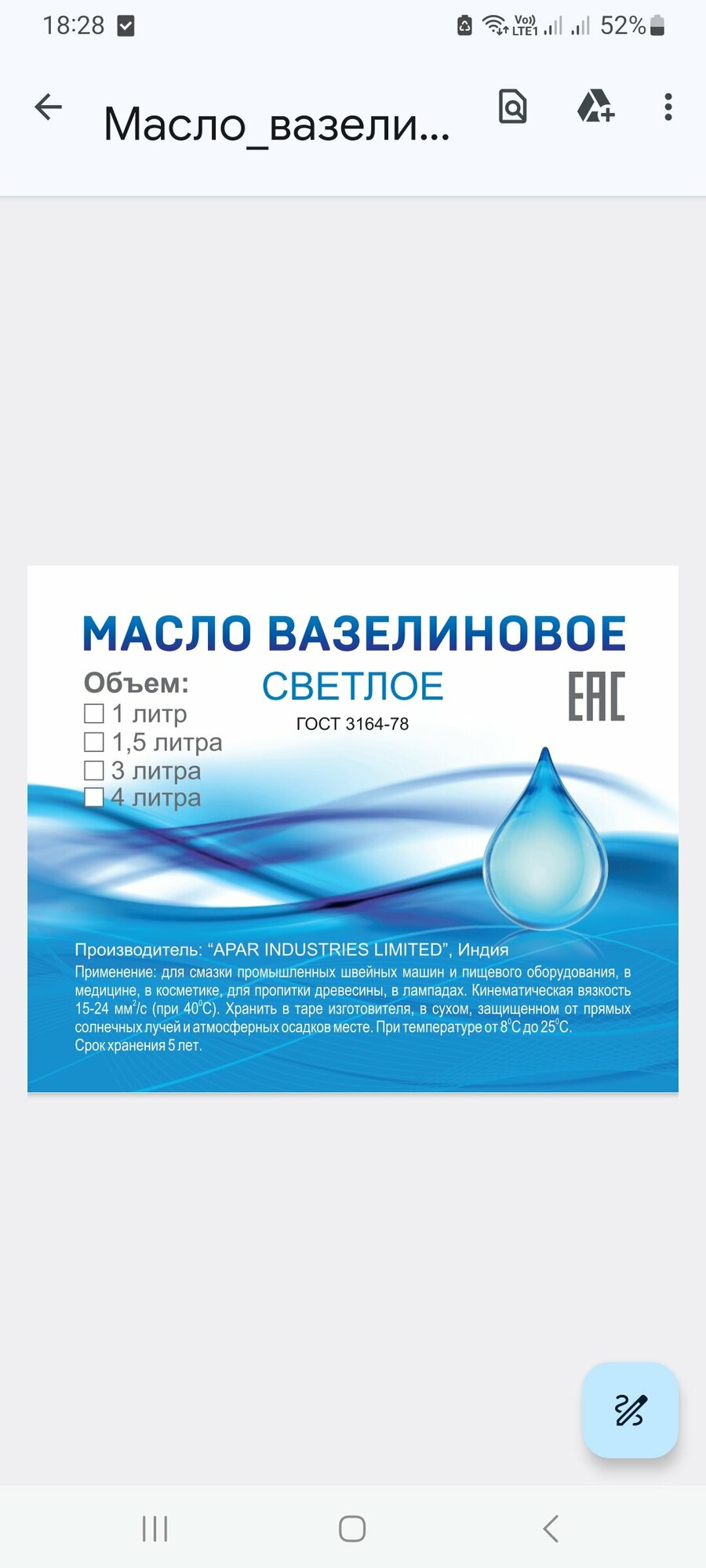 "Масло для швейных машин" - без запаха, 3 литра интересное: