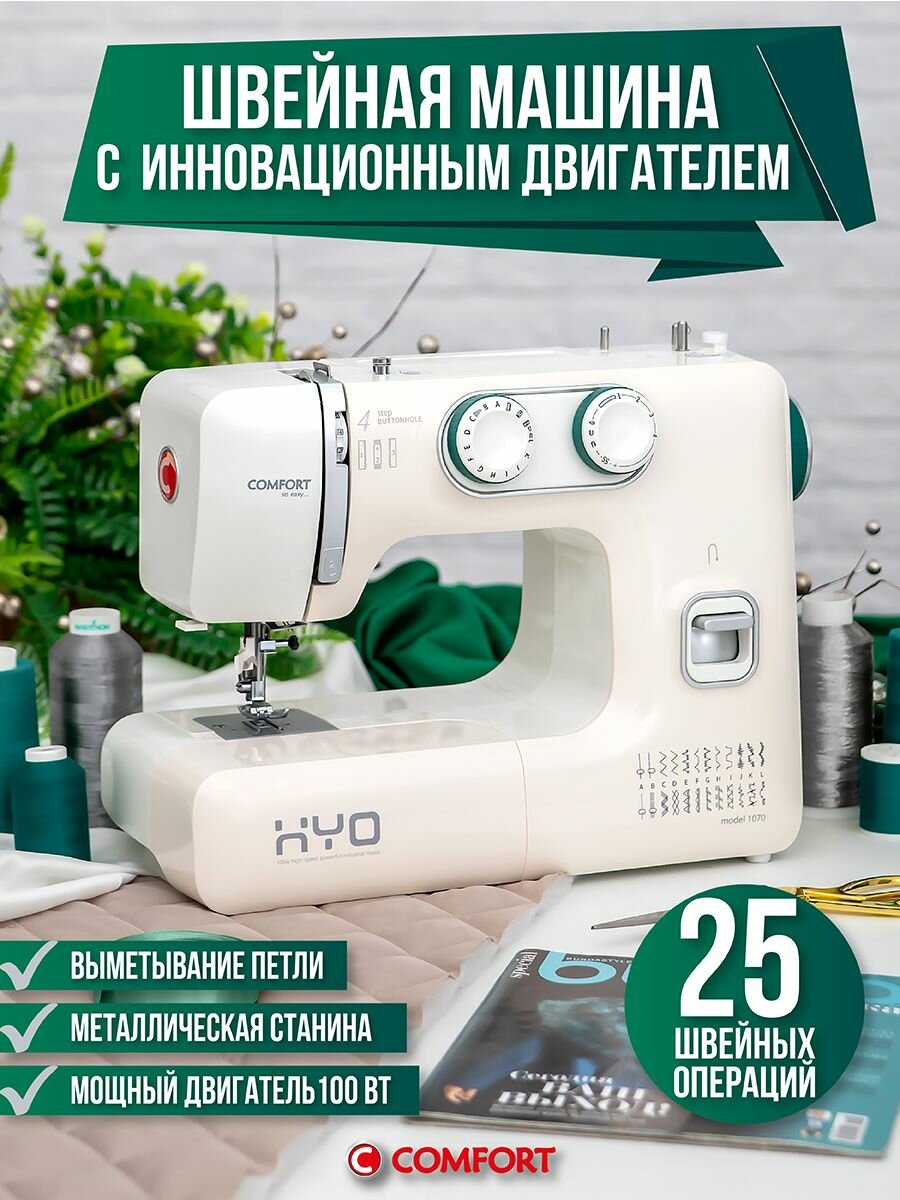 Швейная машина Comfort 1070, 24 операции, петля полуавтомат, нитевдеватель, мощный двигатель 100 Вт