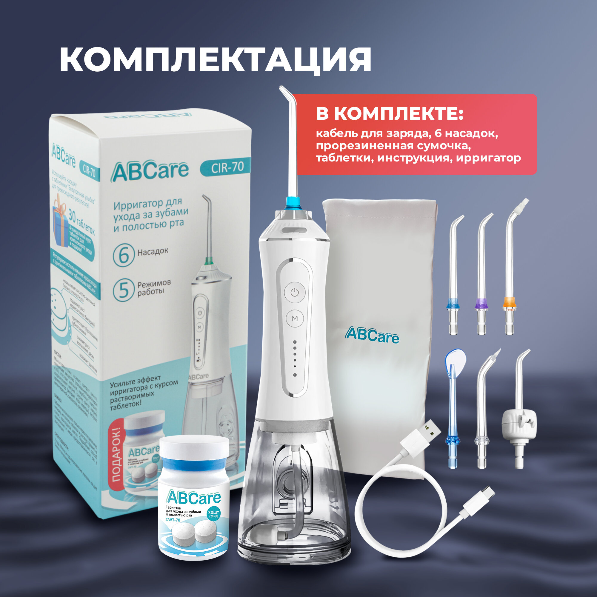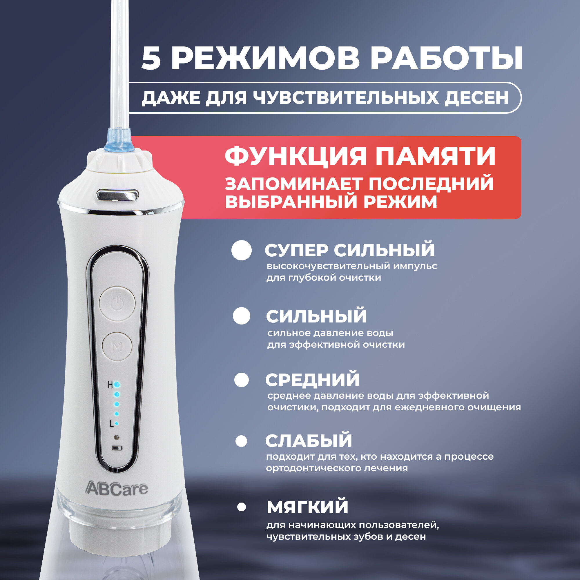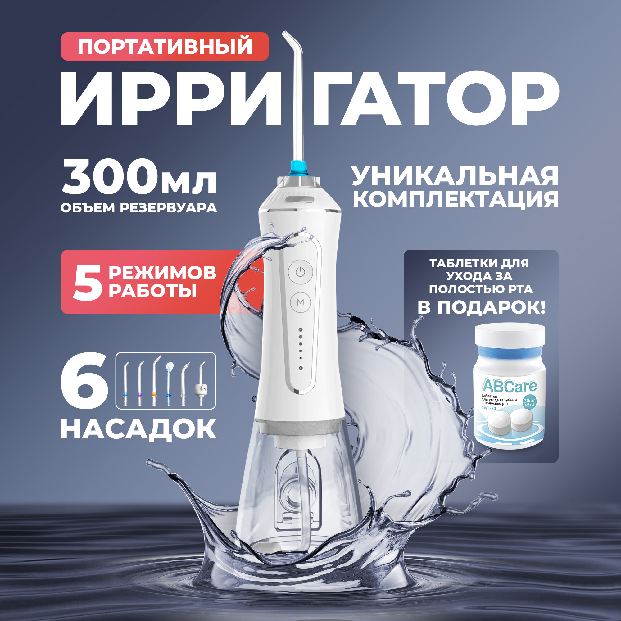 Ирригатор для зубов, ABCare, CIR-70, 6 насадок, 5 режимов, освежающие таблетки, ирригатор для полости рта, ирригатор xiaomi, портативный ирригатор, белый интересное: