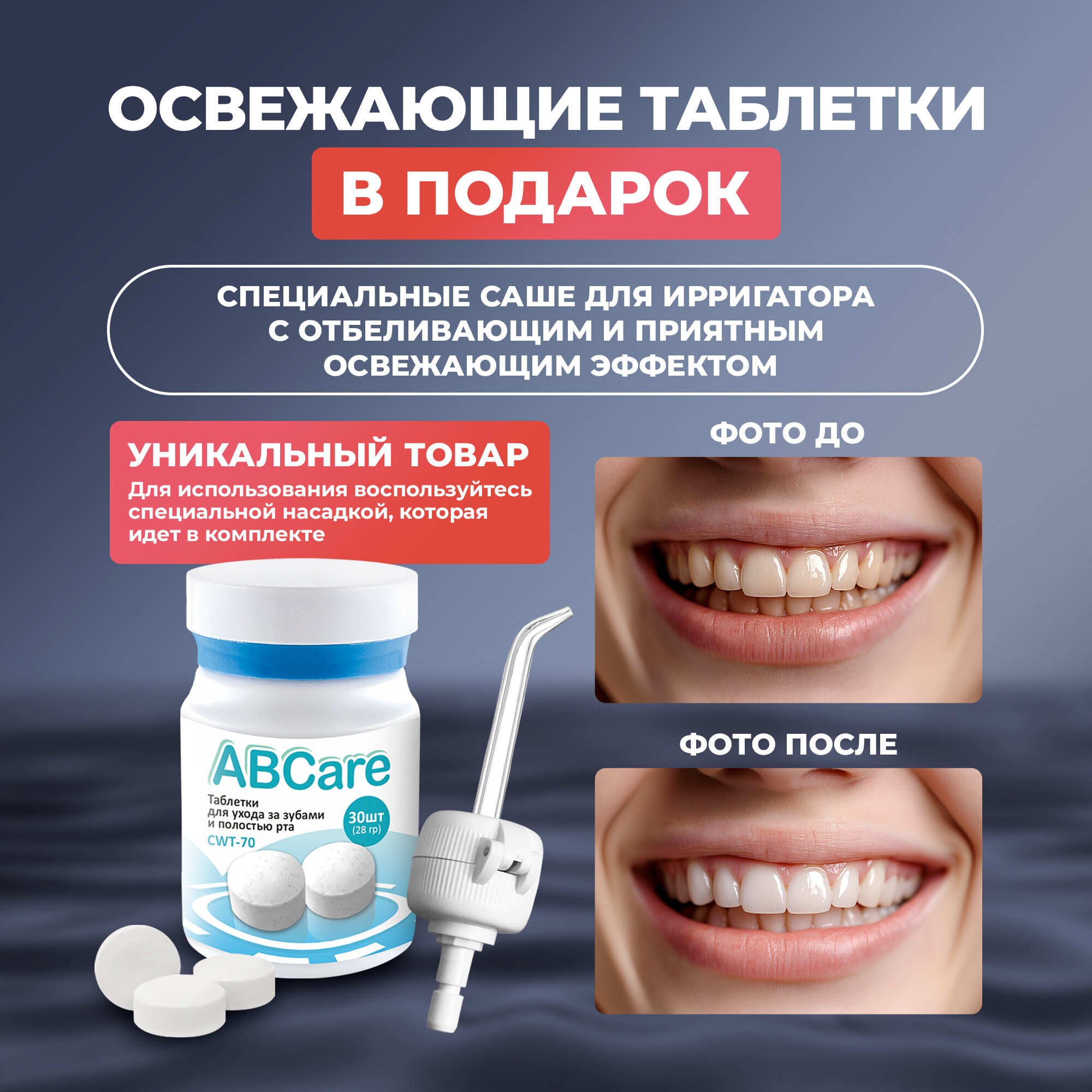 Ниже Вы можете прочитать отзывы на Ирригатор для зубов, ABCare, CIR-70, 6 насадок, 5 режимов, освежающие таблетки, ирригатор для полости рта, ирригатор xiaomi, портативный ирригатор, белый, ознакомится с подробными характеристиками, посмотреть интересные обзоры и фотографии на Ирригатор для зубов, ABCare, CIR-70, 6 насадок, 5 режимов, освежающие таблетки, ирригатор для полости рта, ирригатор xiaomi, портативный ирригатор, белый.