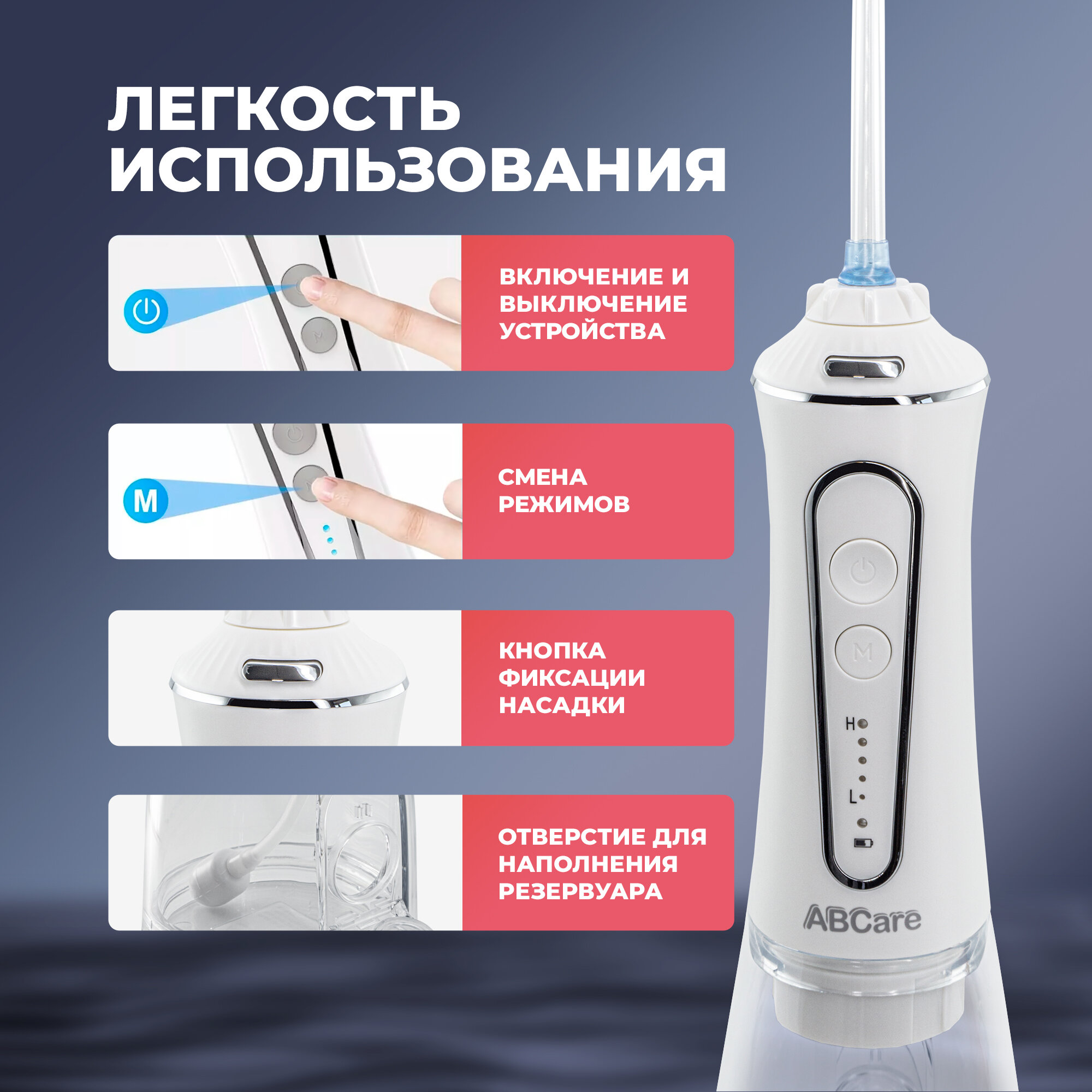 Купить Ирригатор для зубов, ABCare, CIR-70, 6 насадок, 5 режимов, освежающие таблетки, ирригатор для полости рта, ирригатор xiaomi, портативный ирригатор, белый