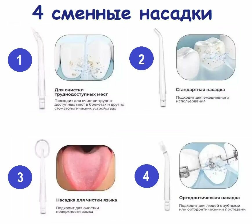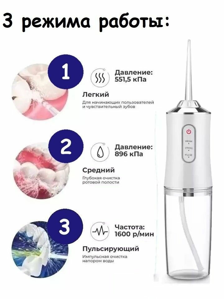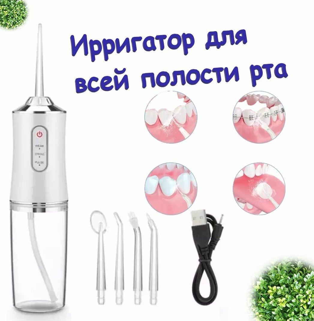 Ирригатор портативный беспроводной для очистки всей полости рта, белый/ водный очиститель зубов/ 4 насадки интересное: