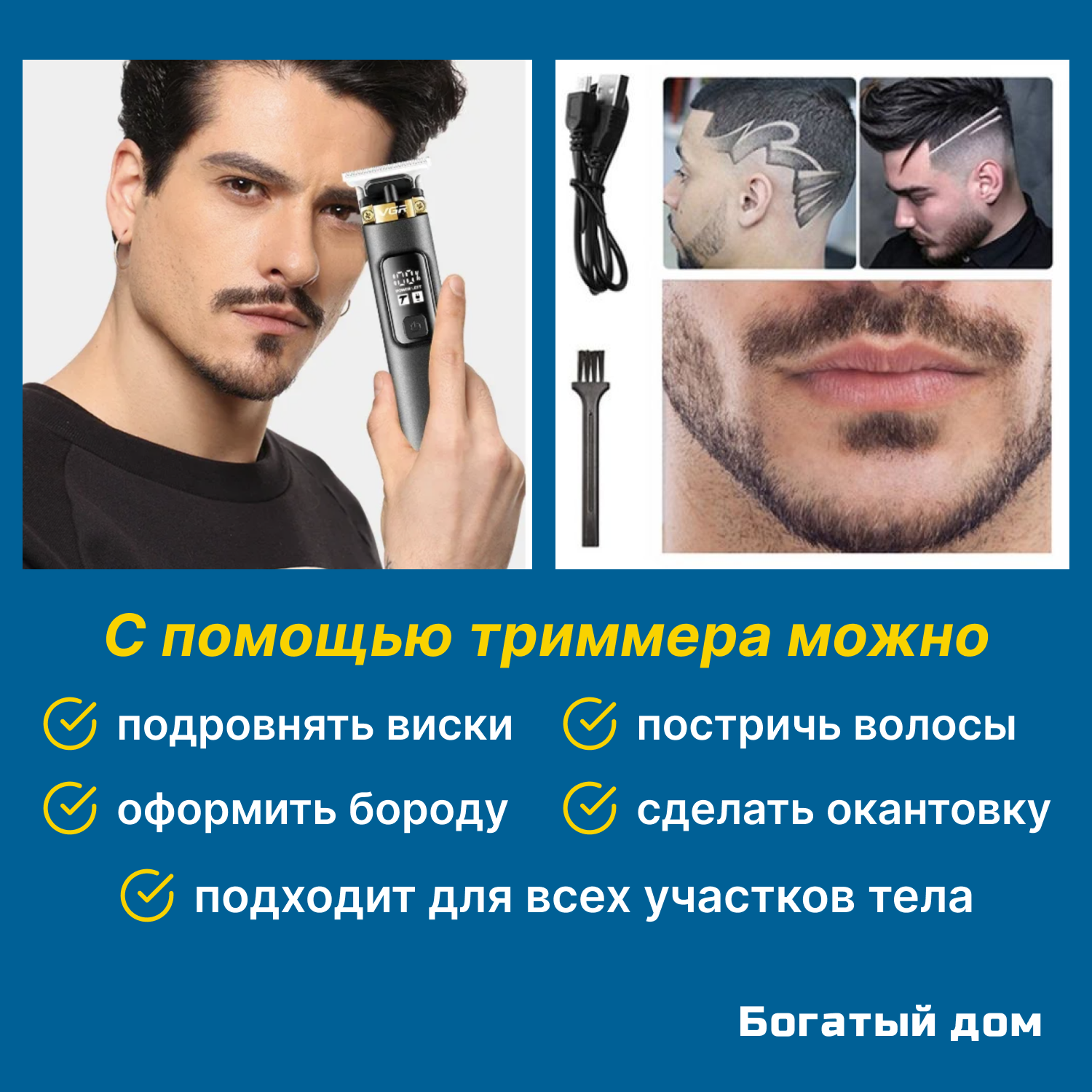 Триммер для бороды VGR, тример-бритва мужская, триммер для бритья, синий