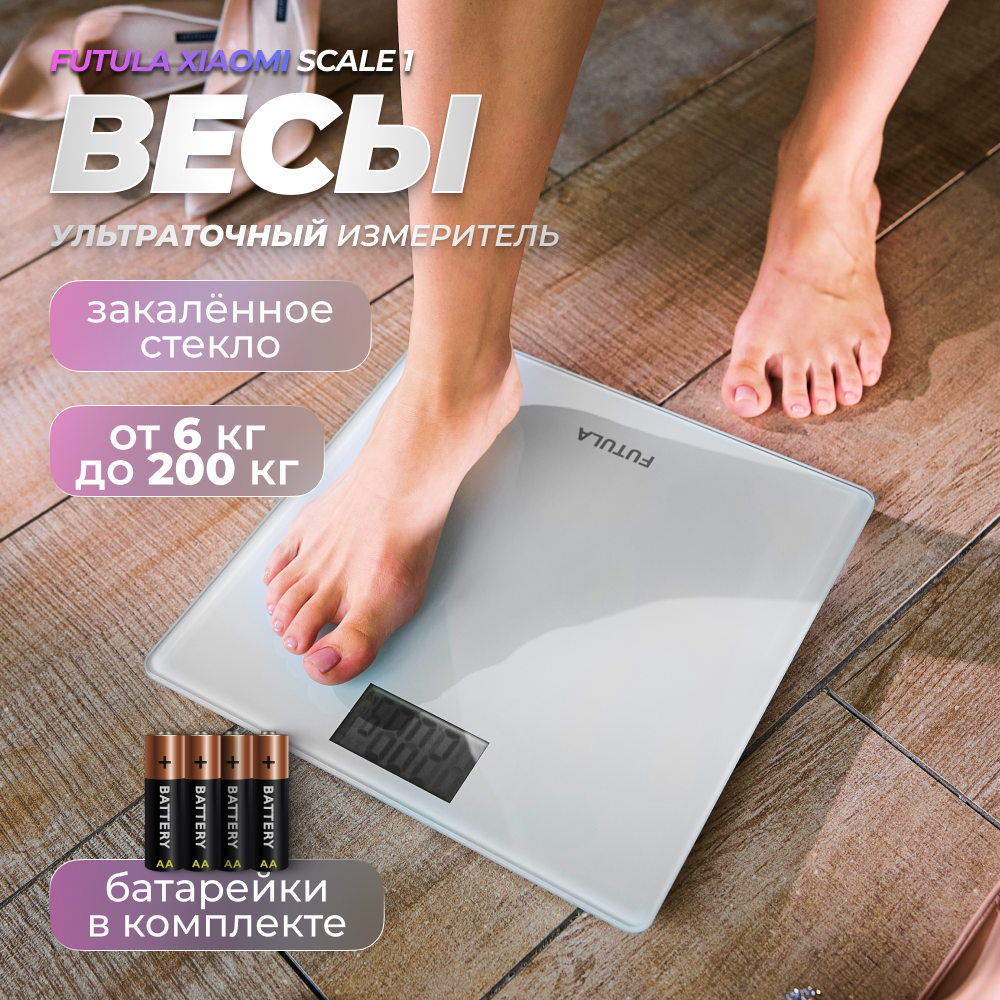 Весы напольные Futula Scale 1 белый, большой LCD дисплей, батарейки в комплекте
