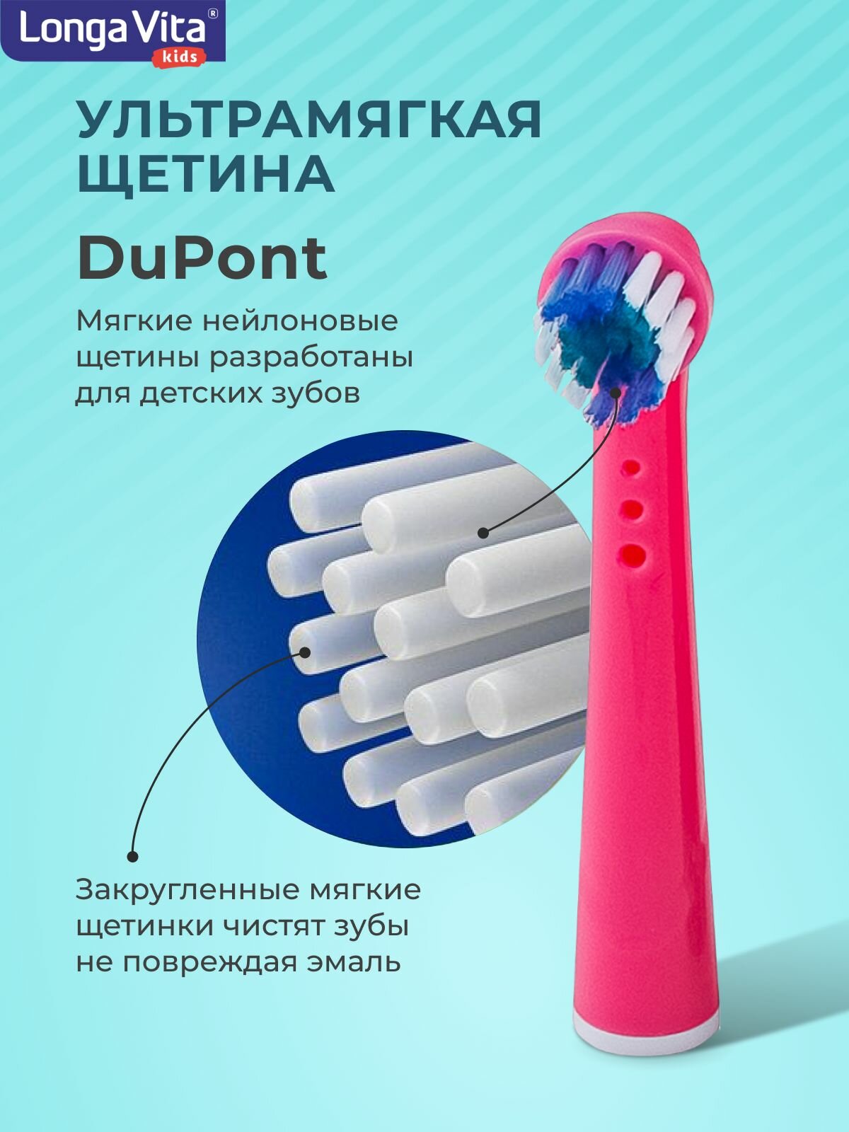 Детская вибрационная зубная щетка Longa Vita