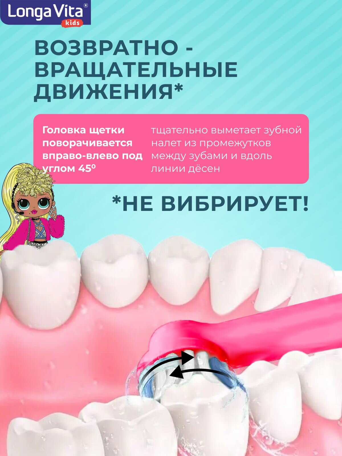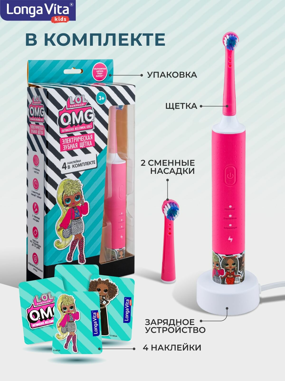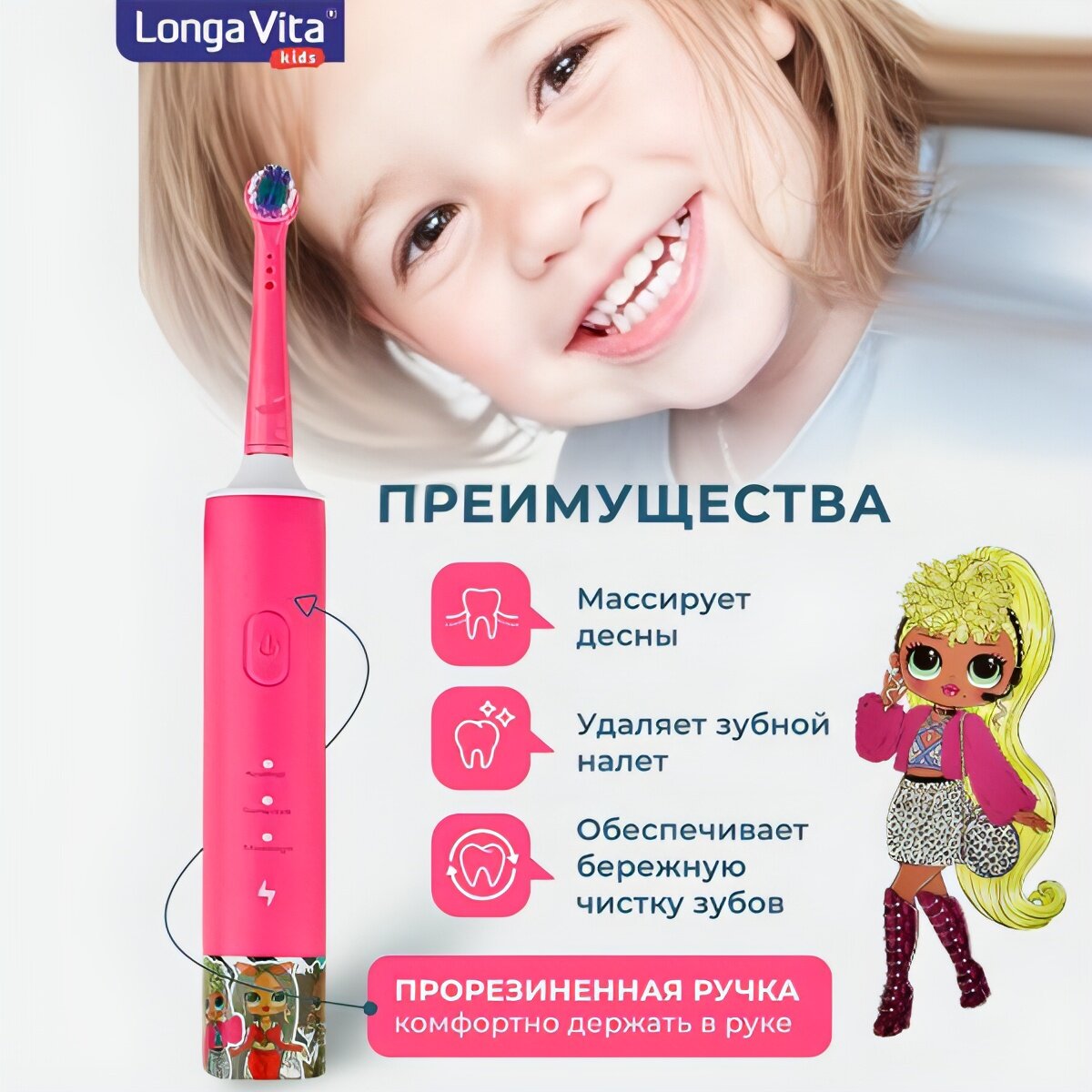 Детская электрическая зубная щётка Longa Vita L.O.L O.M.G., ротационная 2 насадки от 3-х лет интересное: