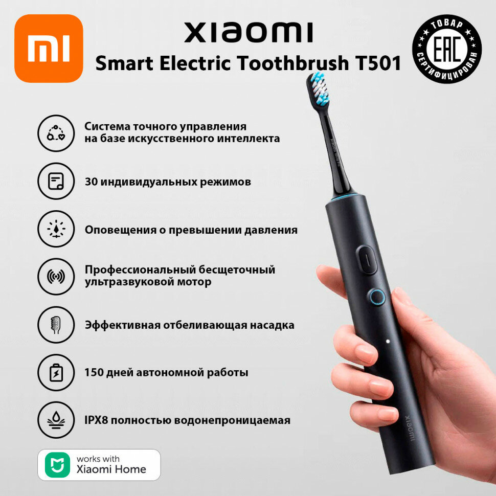 Зубная щетка Xiaomi T501 Smart Electric Toothbrush (BHR7792GL) Тёмно-серый (RU) интересное: