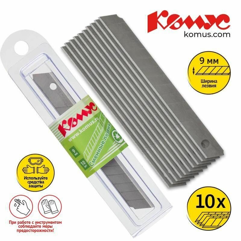 | Дополнительная информация | Лезвия сменные для канцелярских ножей Комус, 9 мм, сегментированные, 10 штук в упаковке |