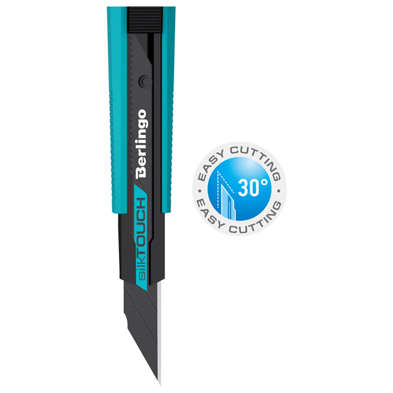 Нож канцелярский 9 мм Berlingo "SilkTouch", черное лезвие,auto-lock, металл. направл. интересное:
