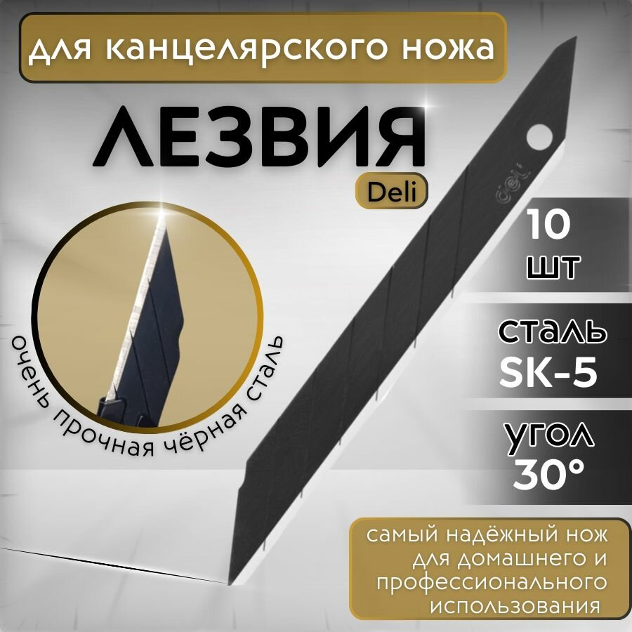 Лезвия сменные для канцелярских ножей 9 мм. 30 градусов, сталь SK5 (Японский сплав), набор 10 шт. Черные. интересное: