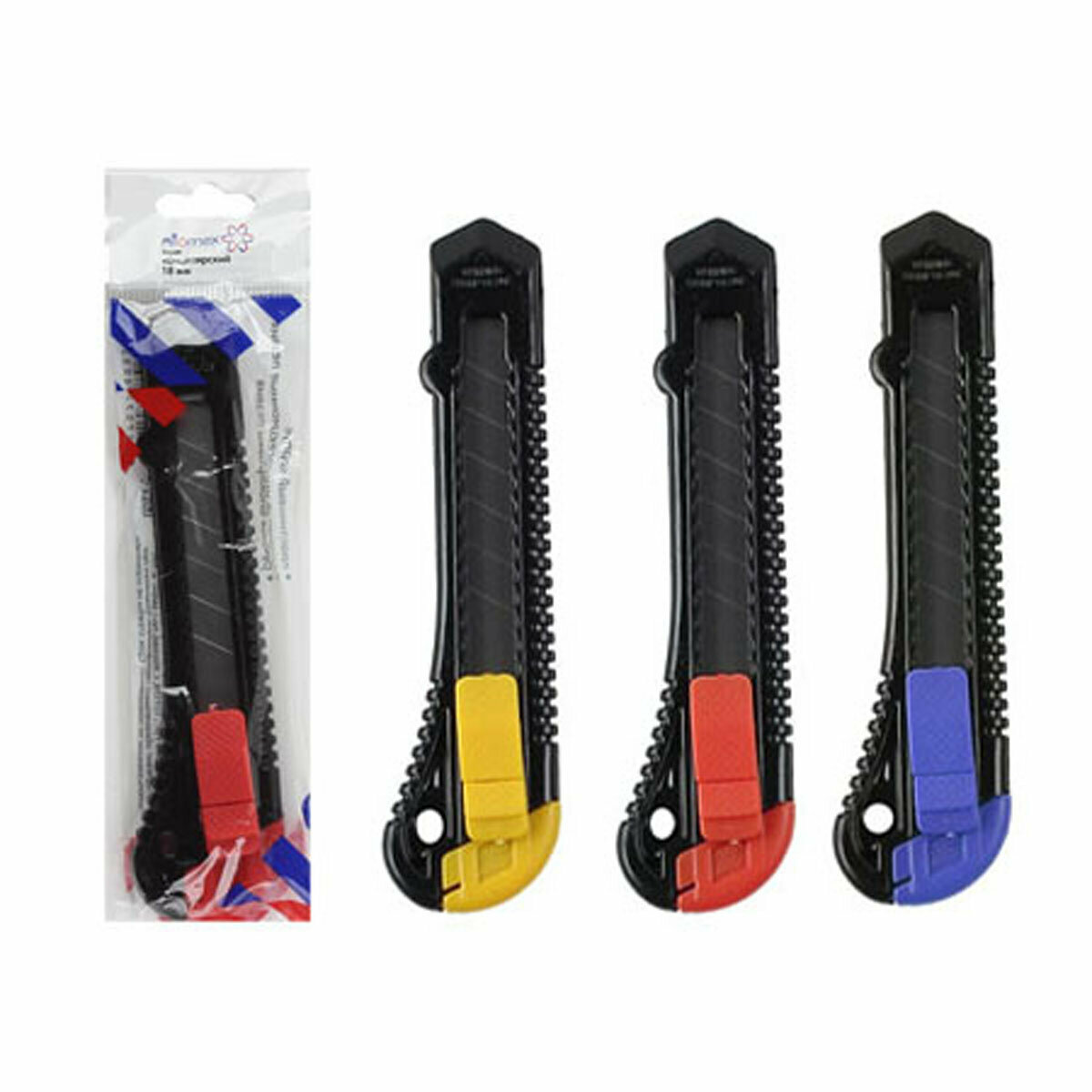 Нож канцелярский Attomex 18 мм. Комплект из 10 ножей интересное: