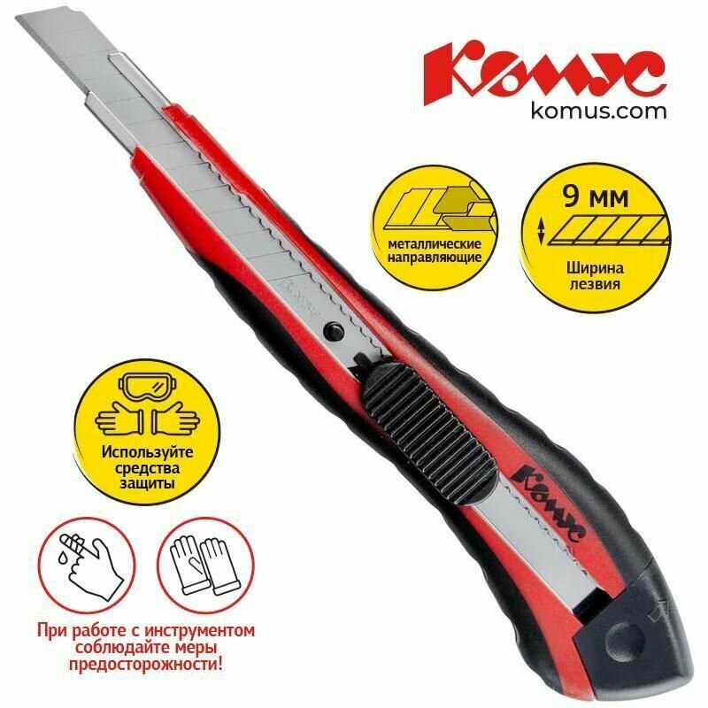 Канцелярский нож Комус строительный, ширина лезвия 9 мм, с фиксатором, + 2 запасных лезвия интересное:
