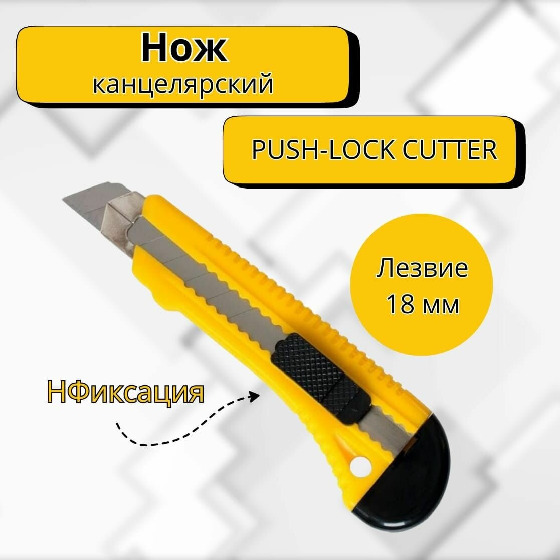 Нож канцелярский 18 мм. с фиксатором "Push-lock", желтый интересное:
