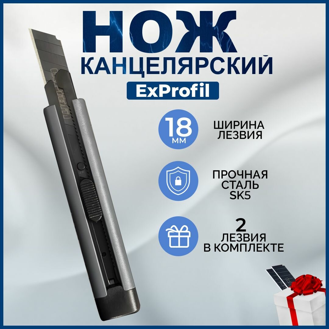 Нож канцелярский строительный ExProfil 18 мм, 1 шт, черное лезвие, Серый интересное: