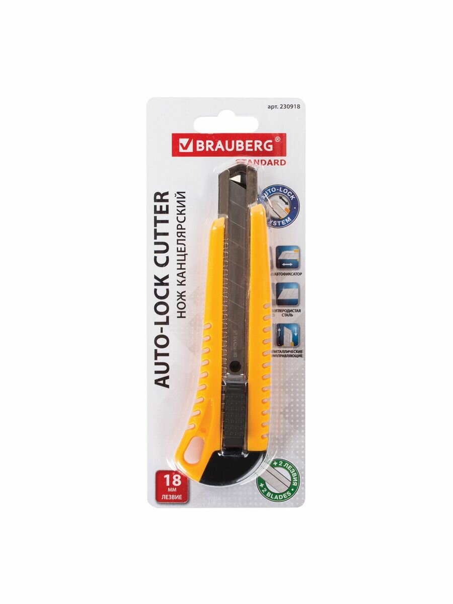 Нож канцелярский 18 мм BRAUBERG "Standard", 3 лезвия в комплекте, автофиксатор, корпус ассорти, 230918 интересное: