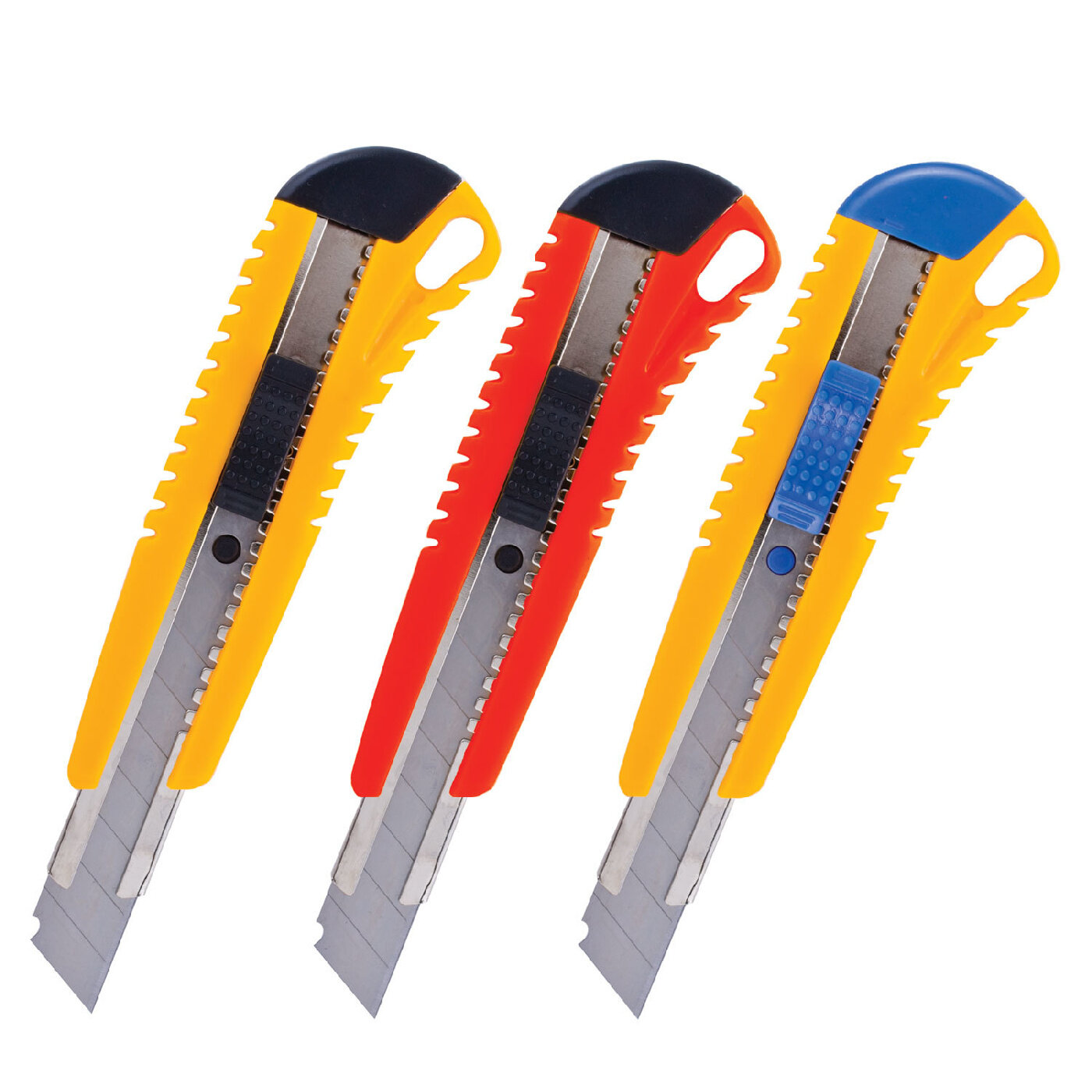 Купить Нож канцелярский 18 мм BRAUBERG "Standard", 3 лезвия в комплекте, автофиксатор, корпус ассорти, 230918