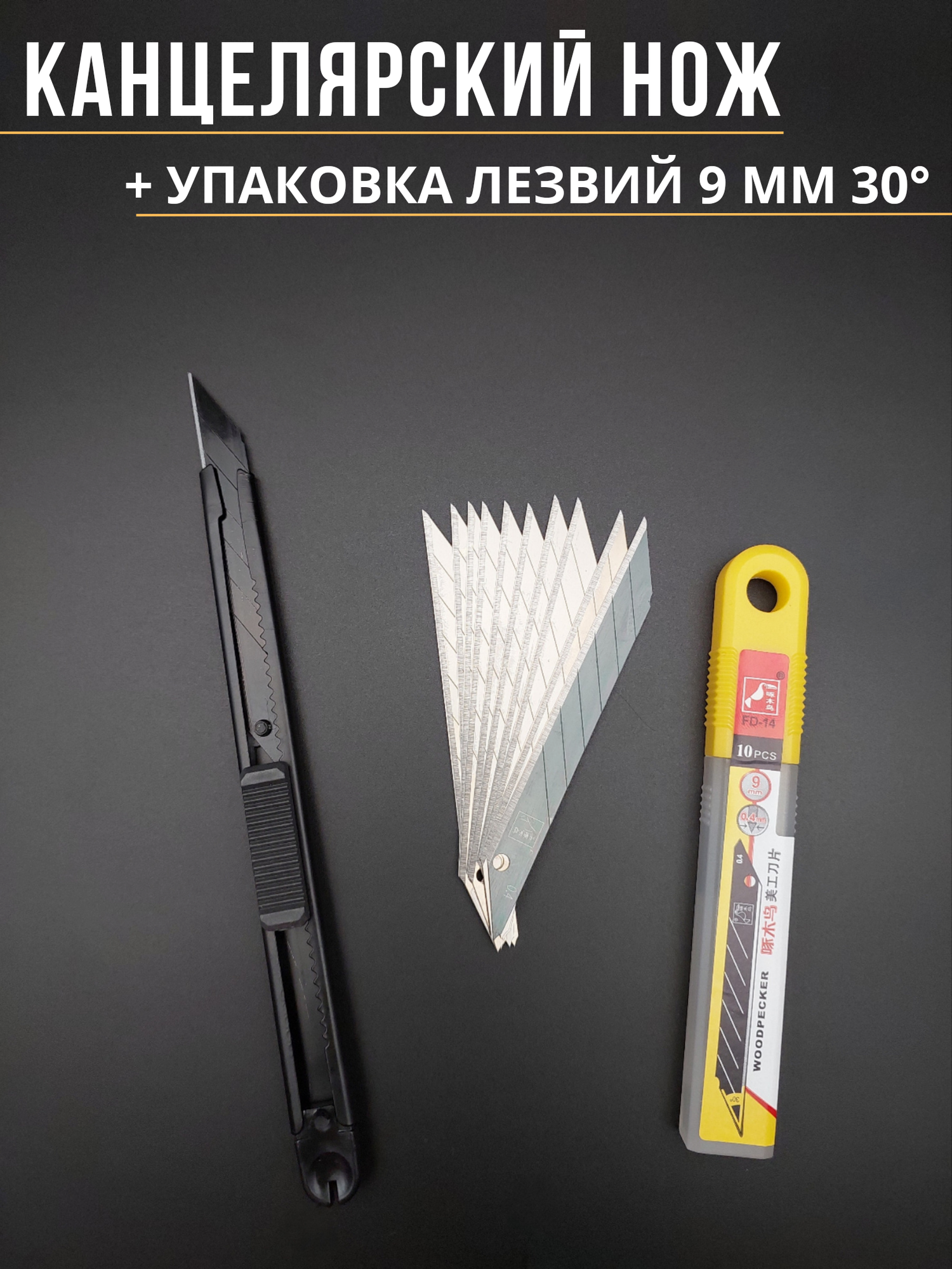 Канцелярский нож 9 мм + сменные лезвия 30° 10шт. интересное: