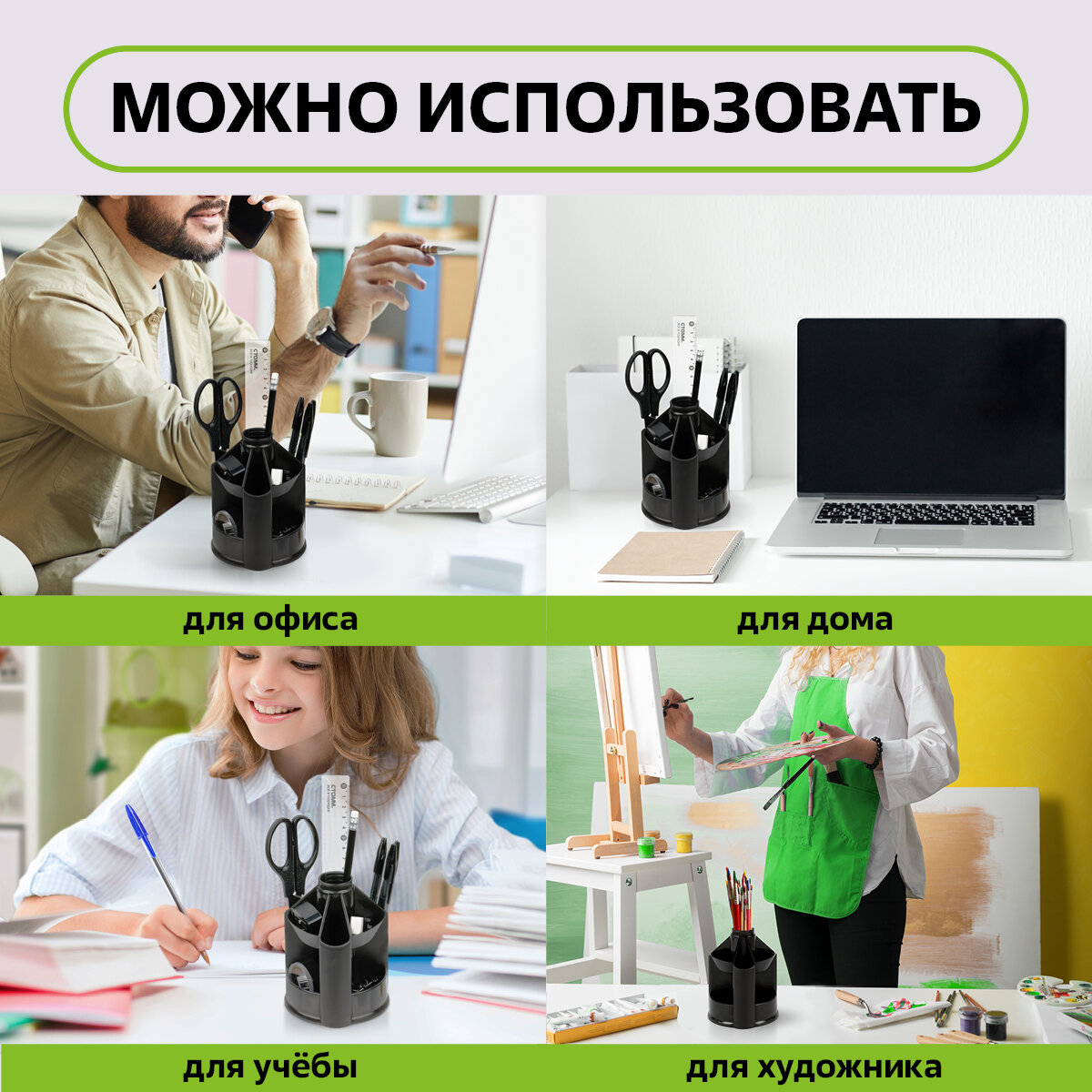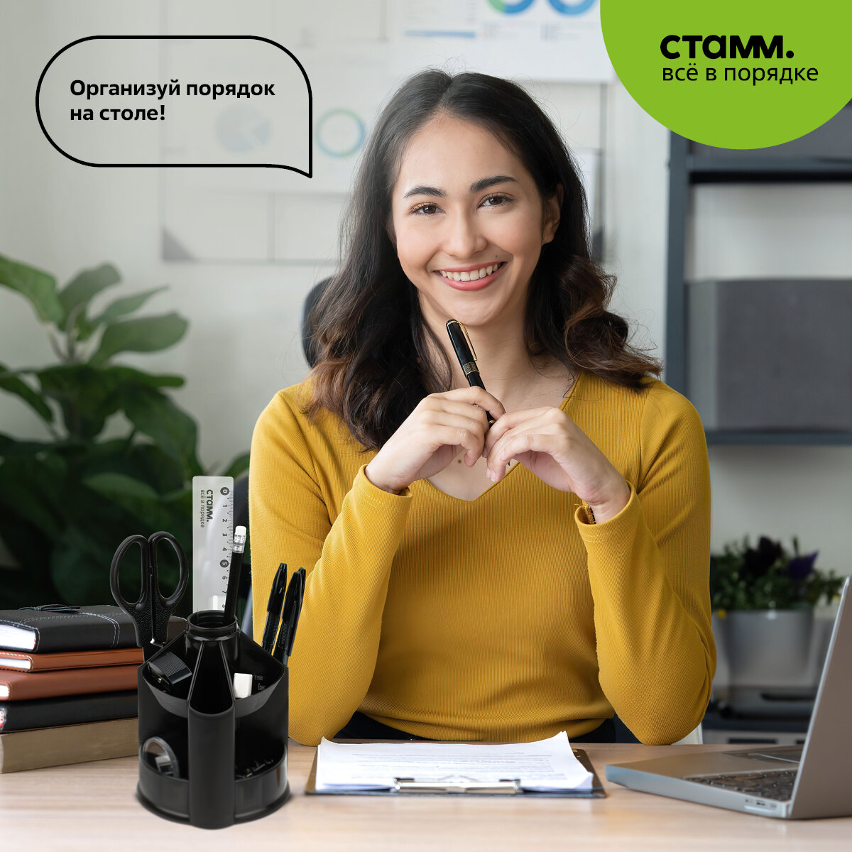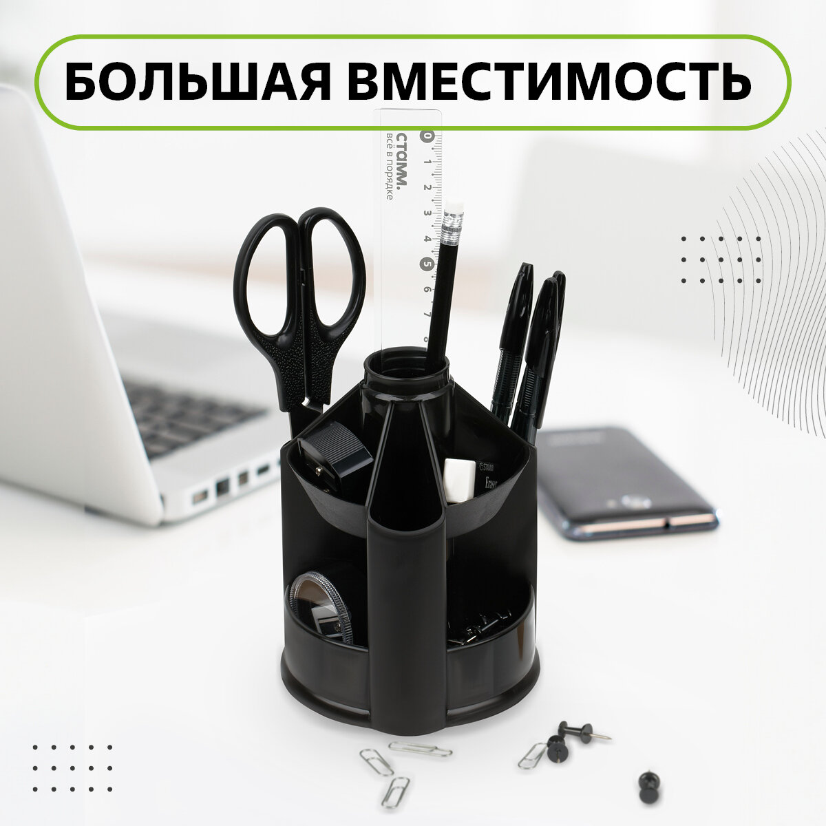 Органайзер для канцелярии / Подставка для ручек и карандашей настольная черная СТАММ "Maxi Desk" интересное: