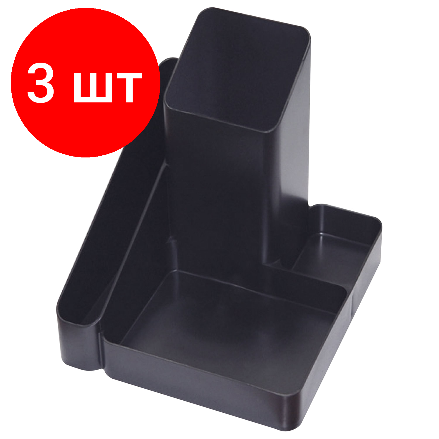 Купить Комплект 3 шт, Подставка-органайзер СТАММ "Имидж", 115х122х111 мм, 4 отделения, черная, ОР31