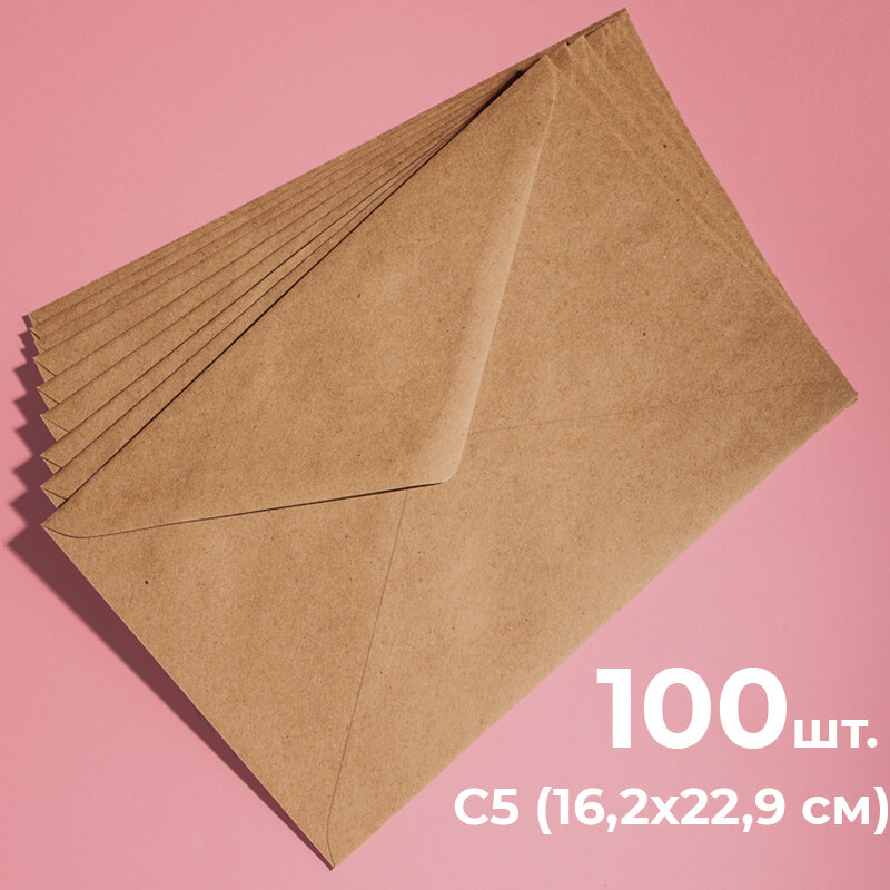 Купить Крафтовые конверты С5 (162х229мм), набор 100 шт. / бумажные конверты а5 из крафт бумаги CardsLike