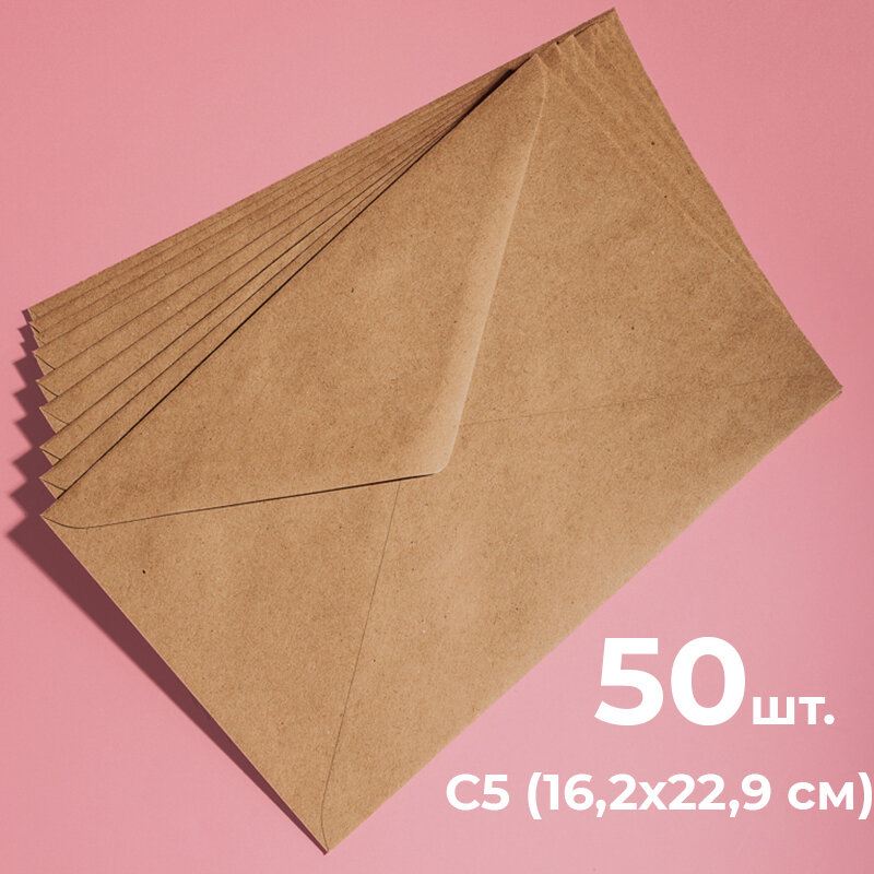 Купить Крафтовые конверты С5 (162х229мм), набор 50 шт. / бумажные конверты из крафт бумаги а5 CardsLike