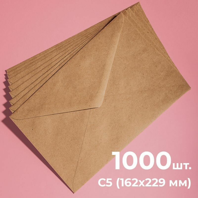 Купить Крафтовые конверты С5 (162х229мм), набор 1000 шт. / бумажные конверты а5 из крафт бумаги CardsLike