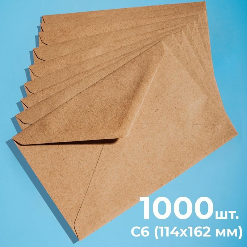 Купить Крафтовые конверты С6 (114х162мм), набор 1000 шт. / бумажные конверты из крафт бумаги CardsLike