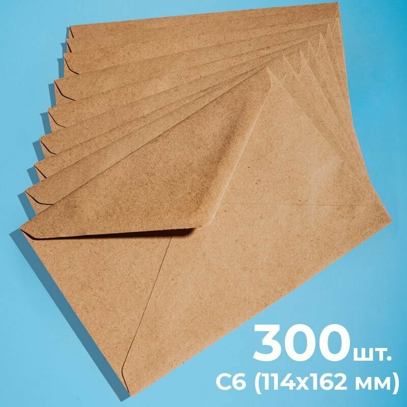 Купить Крафтовые конверты С6 (114х162мм), набор 300 шт. / бумажные конверты из крафт бумаги CardsLike
