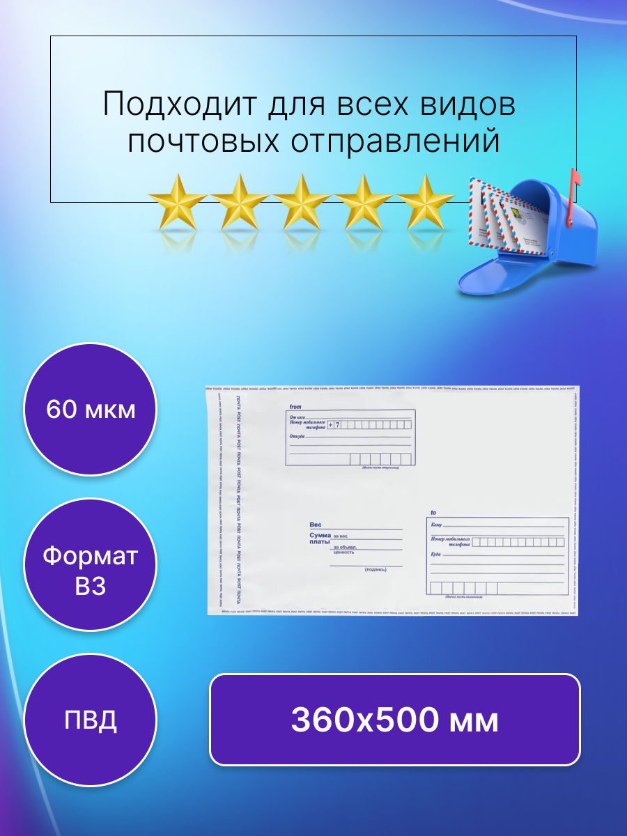 Ниже Вы можете прочитать отзывы на Почтовый пакет Почта России 360х500 мм., без этикетки, 10 штук, ознакомится с подробными характеристиками, посмотреть интересные обзоры и фотографии на Почтовый пакет Почта России 360х500 мм., без этикетки, 10 штук.