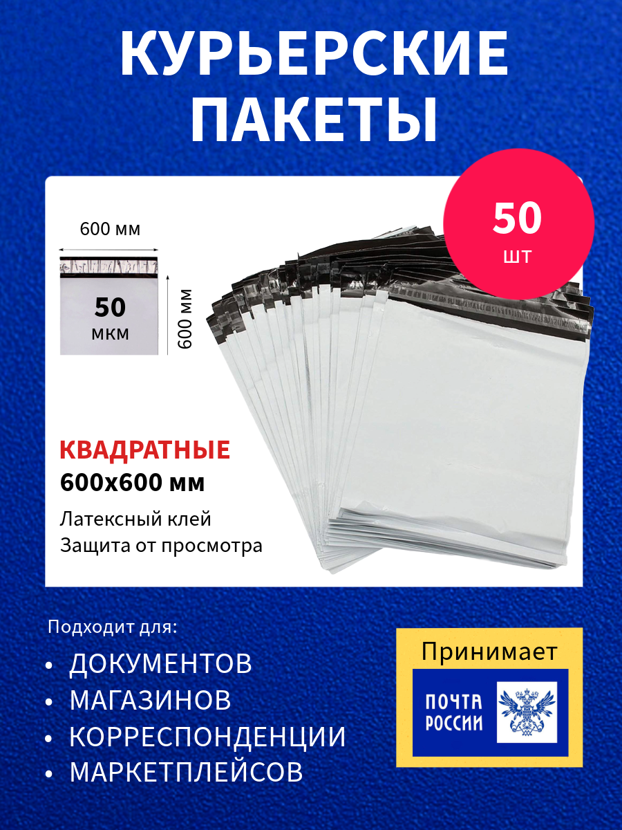 Пакет почтовый Почта России 600х695 мм, 50 штук