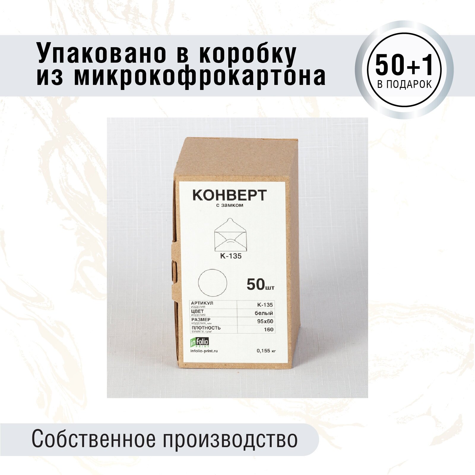 Конверт 60х95 мм для визитки. Цвет белый. Бумага плотная 160 г/м2. 50 штук интересное: