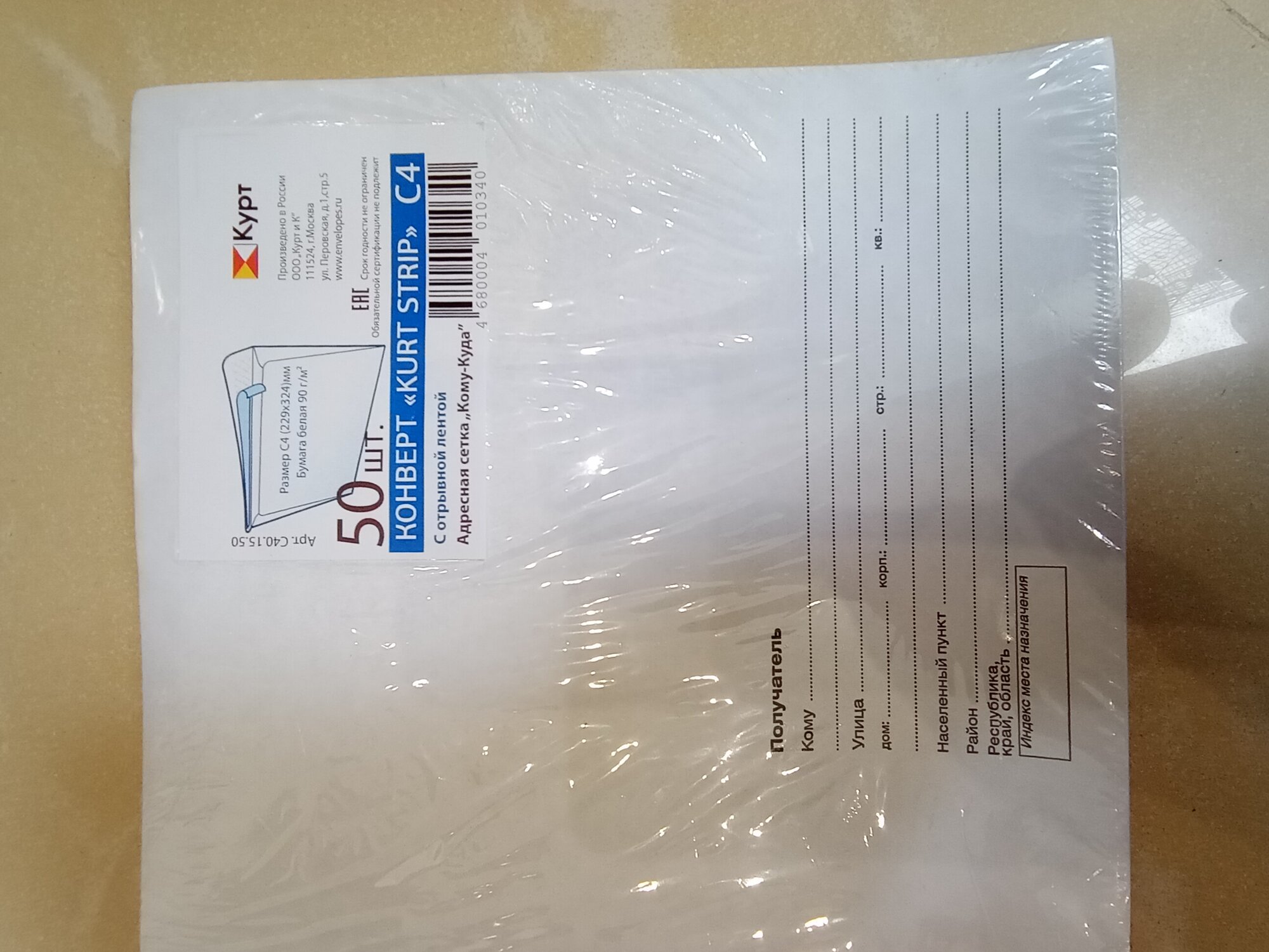 Конверт почтовый C4 KurtStrip (229x324, 90г, стрип, печать "Куда-Кому") белый, 50шт. (С40.15.50) интересное: