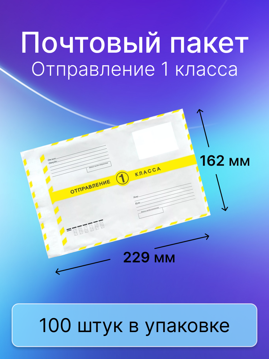 Купить Пакет почтовый 1 класса Почта России 162х229 мм., 100 штук