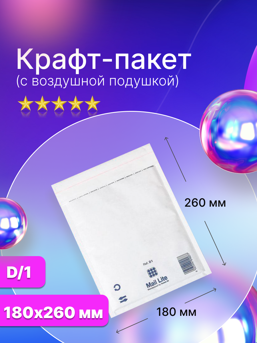 Крафт пакет с воздушной подушкой Mail Lite D/1 (180х260 мм), белый, 10 штук интересное: