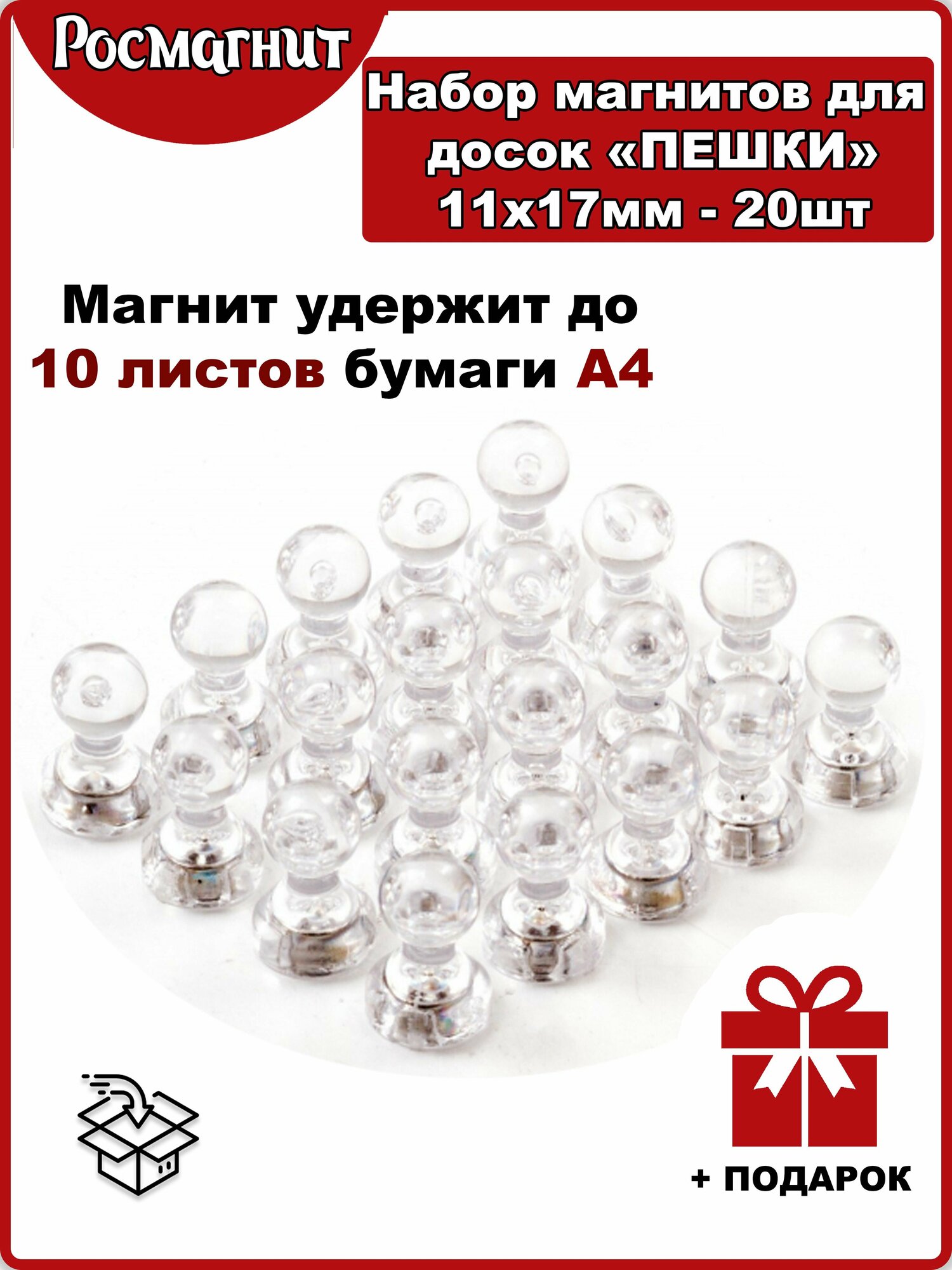 Набор неодимовых магнитов для магнитной доски Пешка 11х17 мм -22шт(прозрачный) интересное: