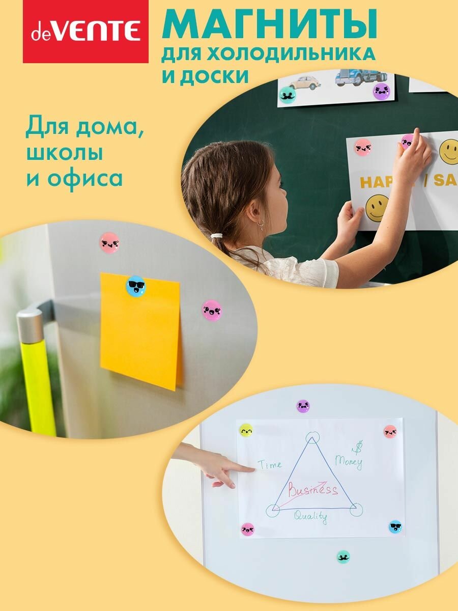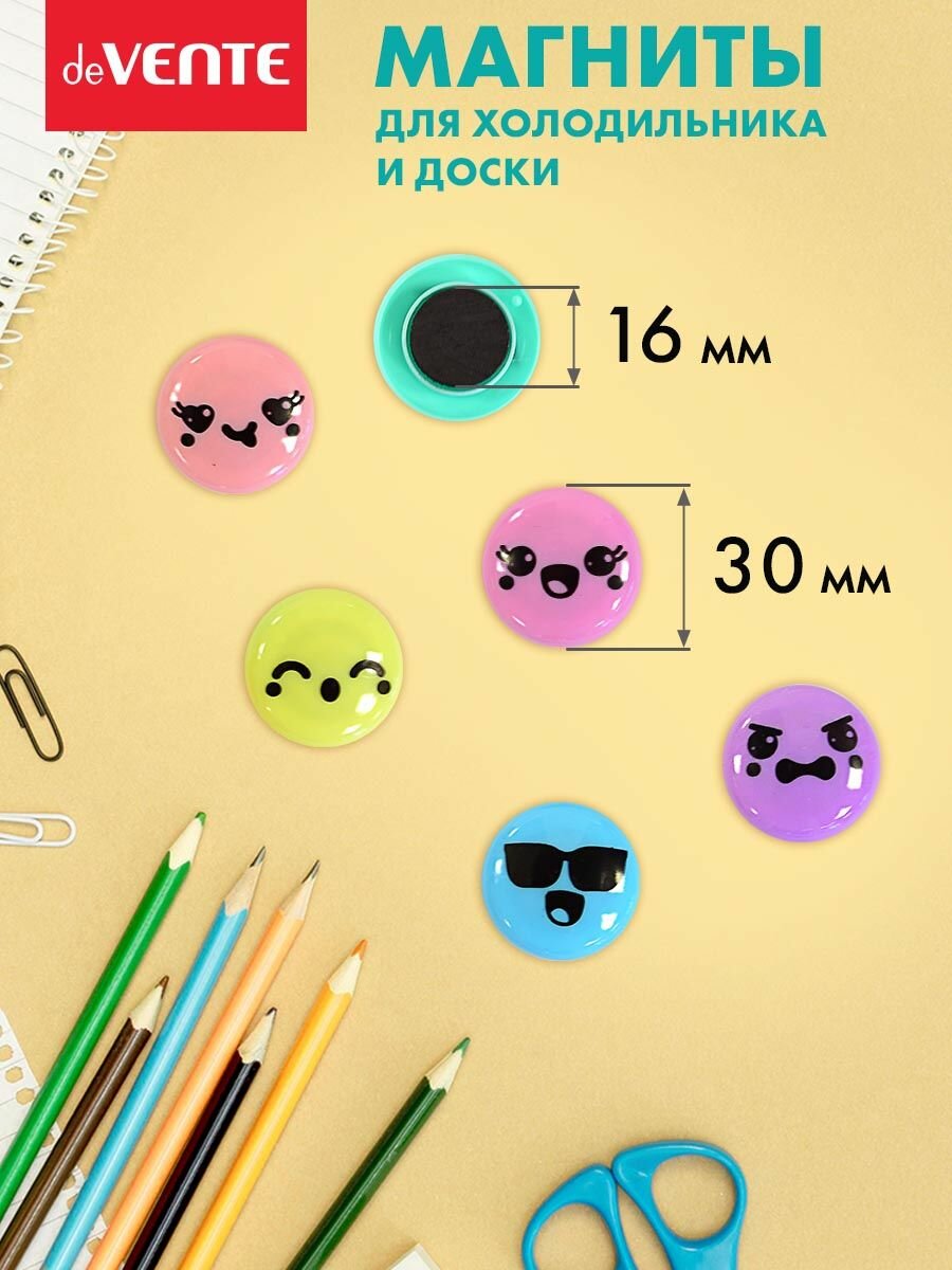 Магниты для досок deVENTE "Smile", для офисной, диаметр 30 мм, ассорти в пастельных цветах, 12 шт