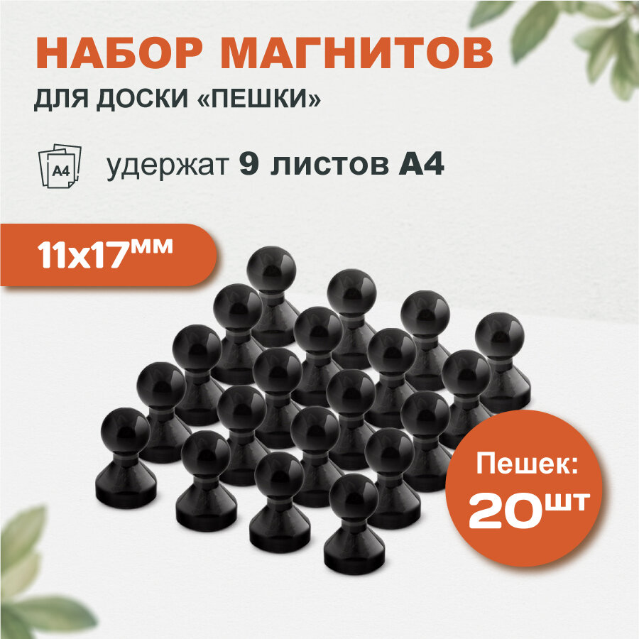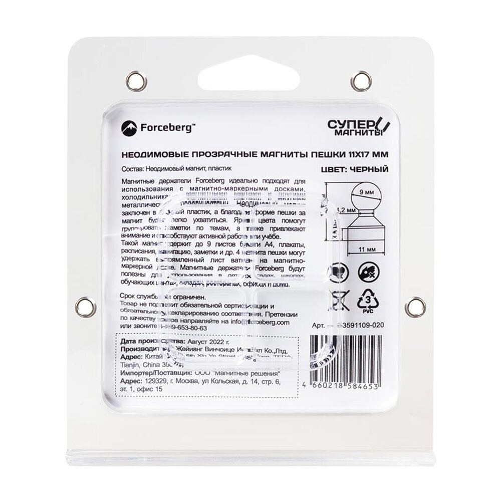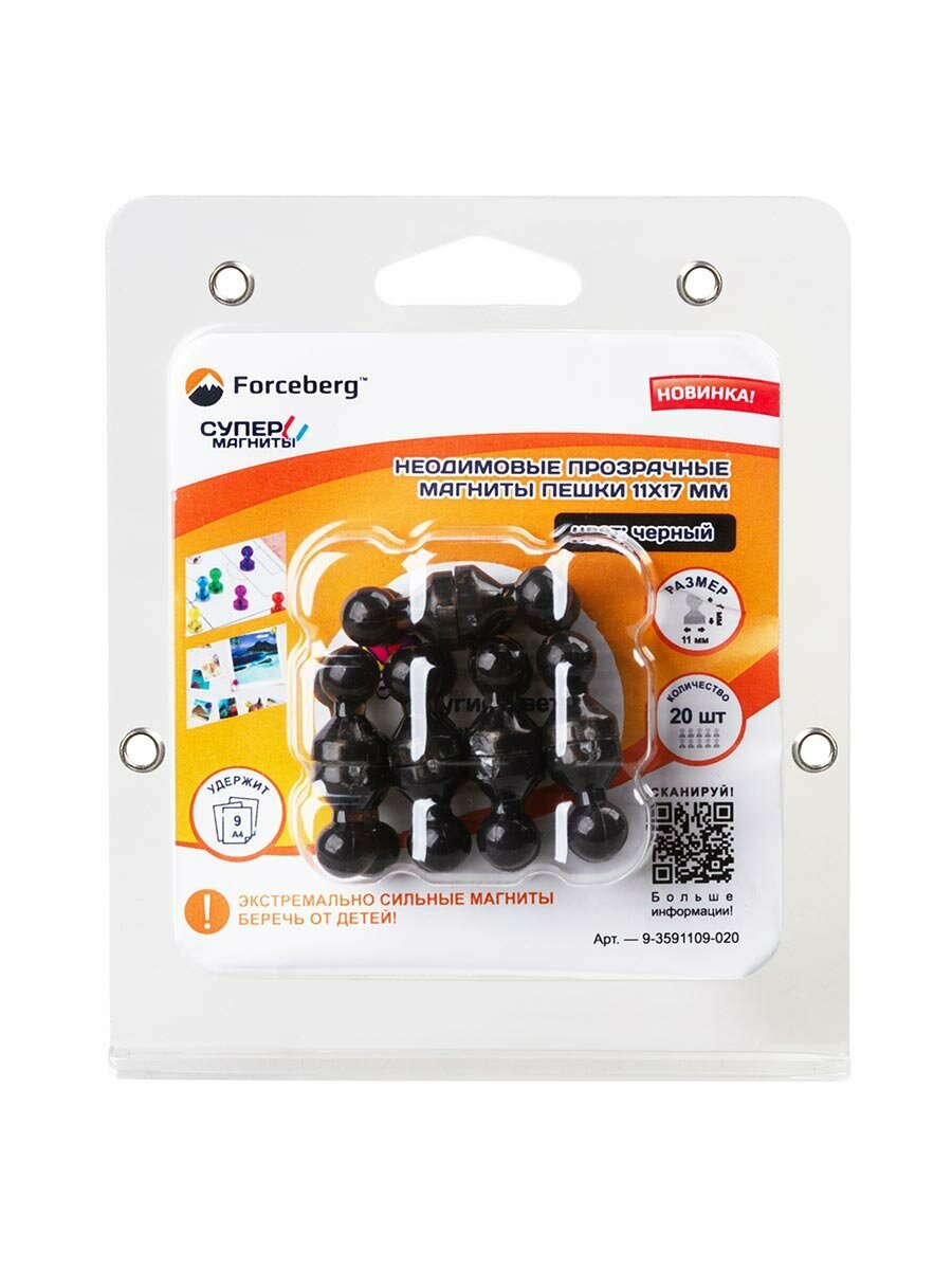 Купить Неодимовый прозрачный магнит для магнитной доски Пешка Forceberg 11х17 мм, черный, 20 шт
