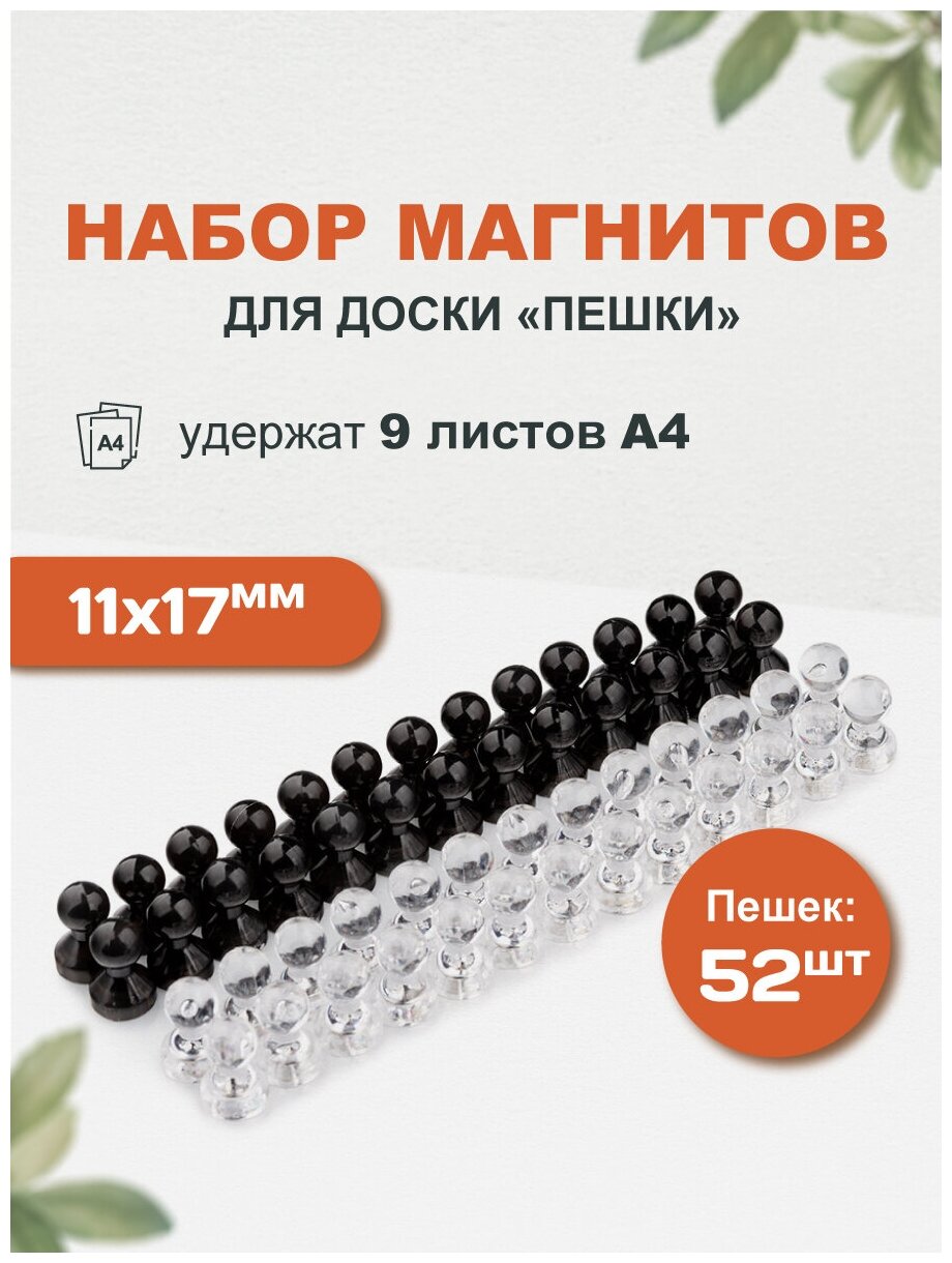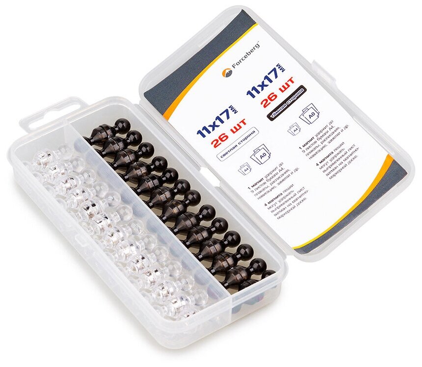 Forceberg Набор прозрачных неодимовых магнитов для магнитной доски Пешка 11x17 мм, безцветные и черные, 52 шт 9-3591120-052