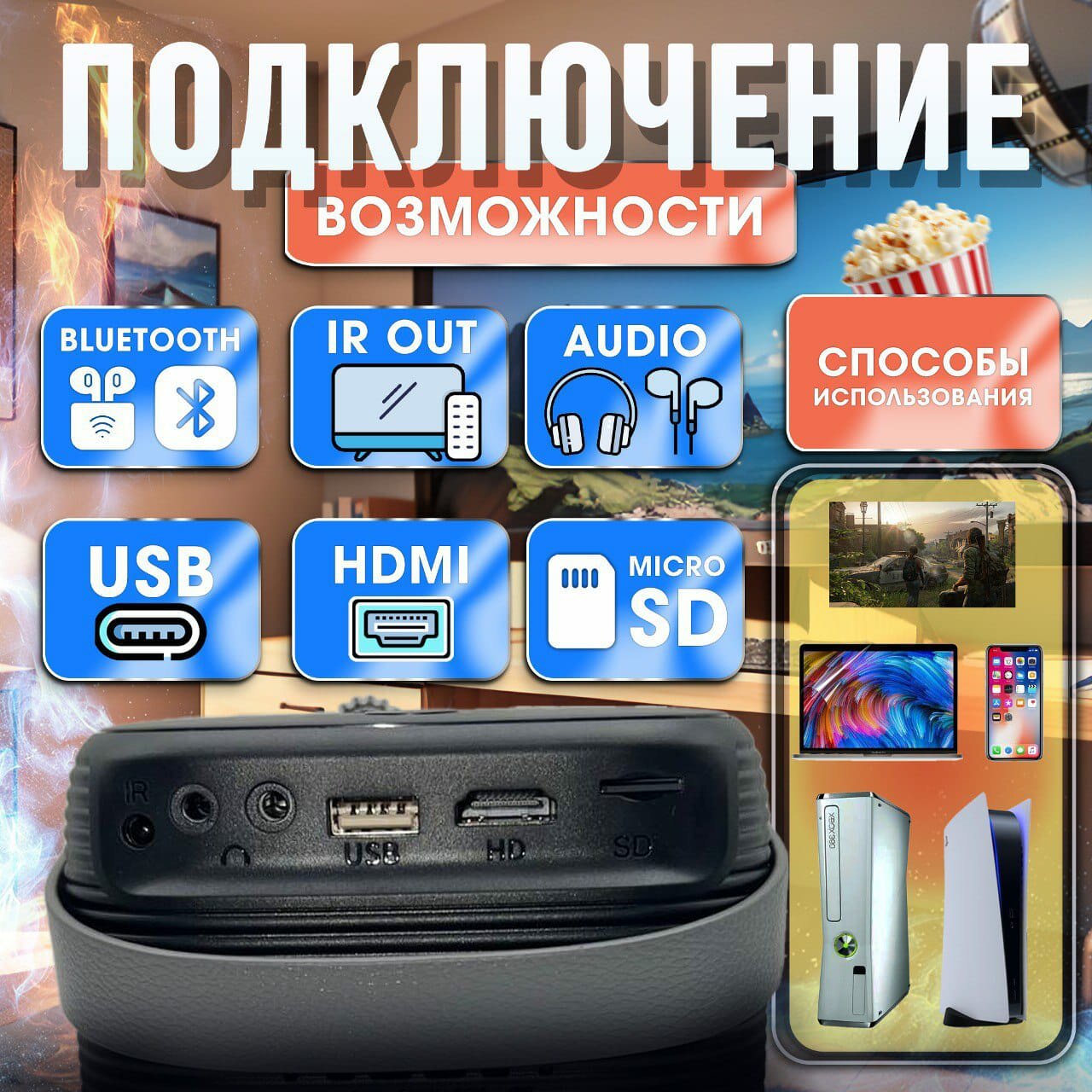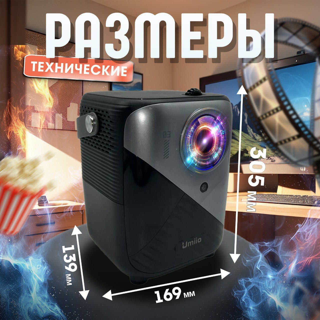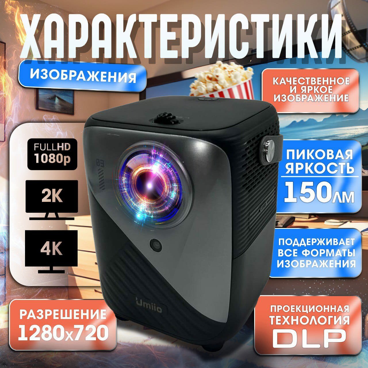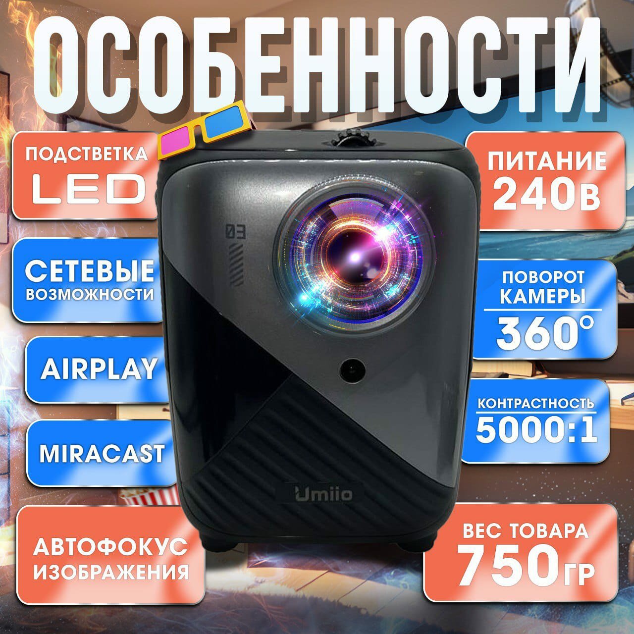 Портативный Игровой проектор Umiio Q3 Pro, домашний кинотеатр HDMI вход Wi-Fi Bluetoth, 1280х720 HD интересное: