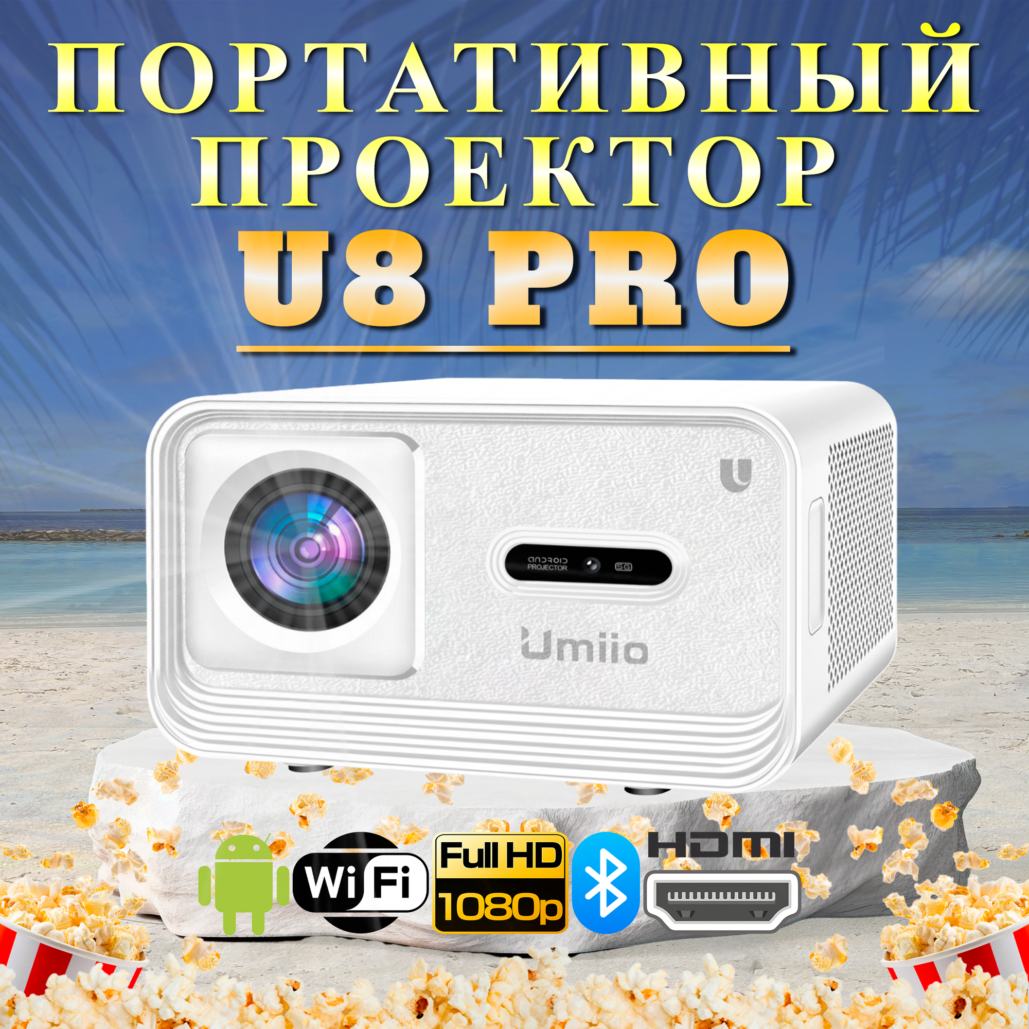 Проектор для домашнего кинотеатра U8 Pro, портативный мини проектор для фильмов и игр, белый интересное: