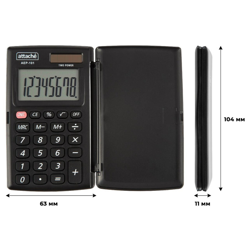 Калькулятор Attache Карманный, с крышкой, AEP-101, 8 разрядов, двойное питание, черный интересное: