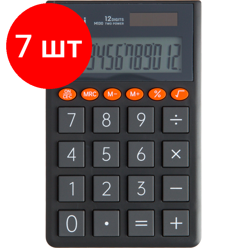 Купить Комплект 7 штук, Калькулятор карманный Deli EM130, 12-р,дв.пит.,70.2x8.5x112.2 мм,темн-сер