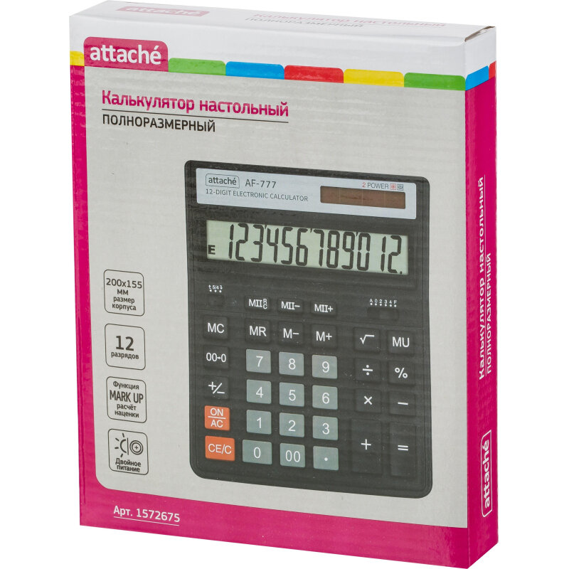 Калькулятор настольный полн/Р Attache AF-777,12р,дв.пит,200x155мм, черный интересное:
