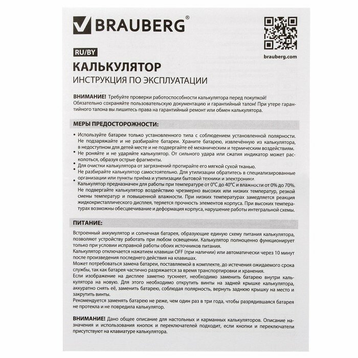 Калькулятор карманный BRAUBERG PK-608