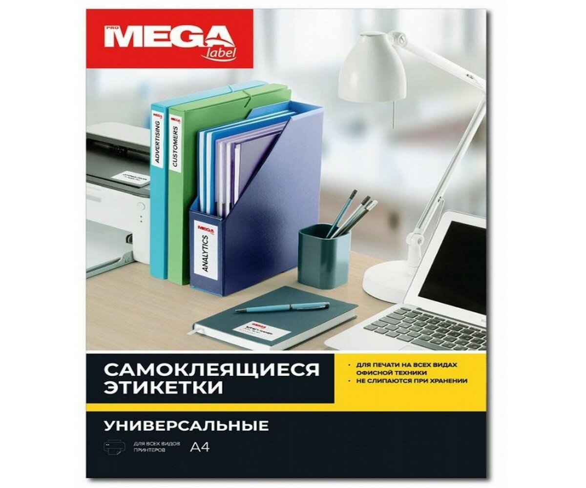 Этикетки самоклеящиеся глянцевые Promega label белые 210х297 мм (1 шта на л А4, 100 л в уп) 73633