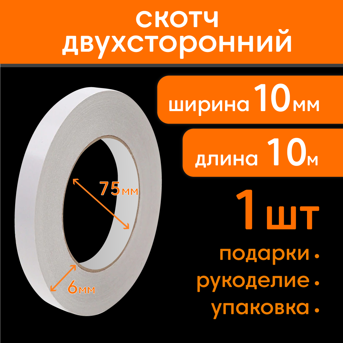Купить Двухсторонний скотч тонкий 10 мм 10 м 1 рулон