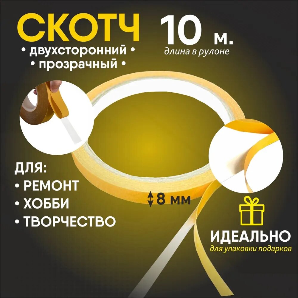 Двухсторонний скотч тонкий 10 мм 10 м 1 рулон интересное: