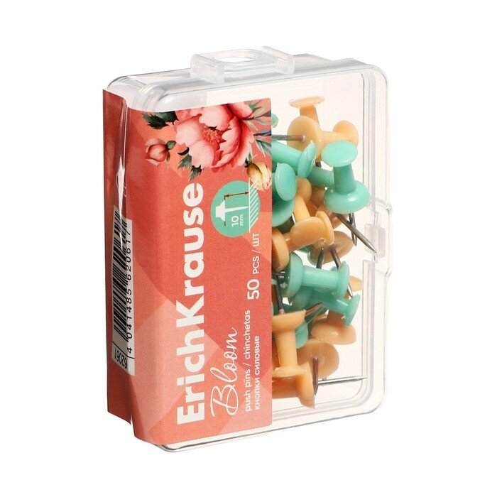 Кнопки канцелярские ErichKrause - Pastel Bloom, силовые, в коробке, 50 шт в наборе