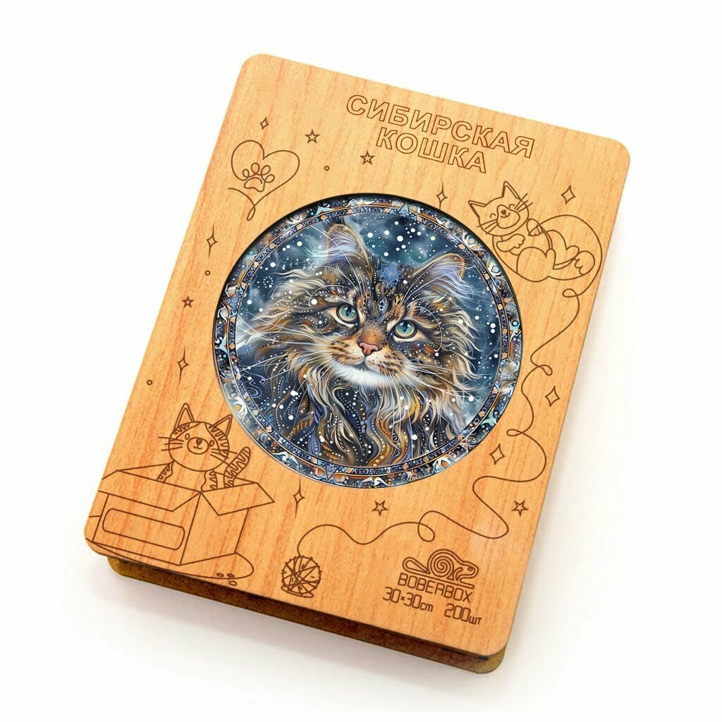 Купить Деревянный пазл BoberBox "Мандала Сибирская кошка", 200 деталей
